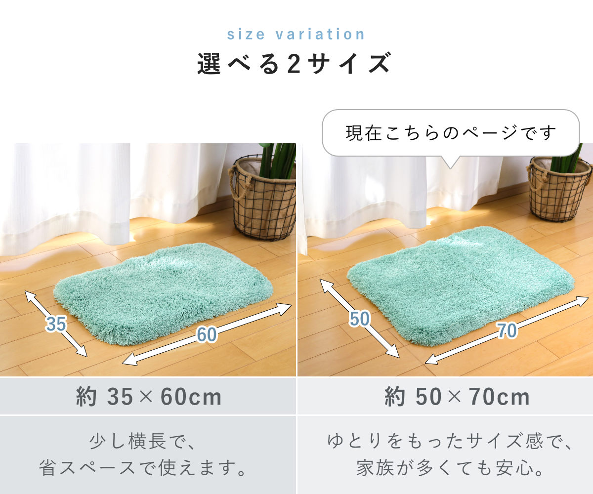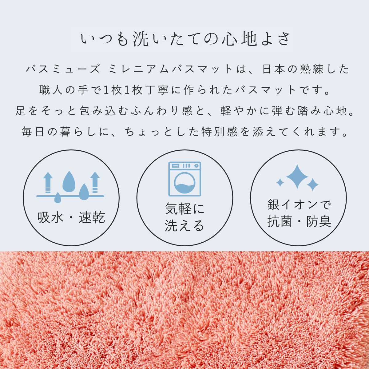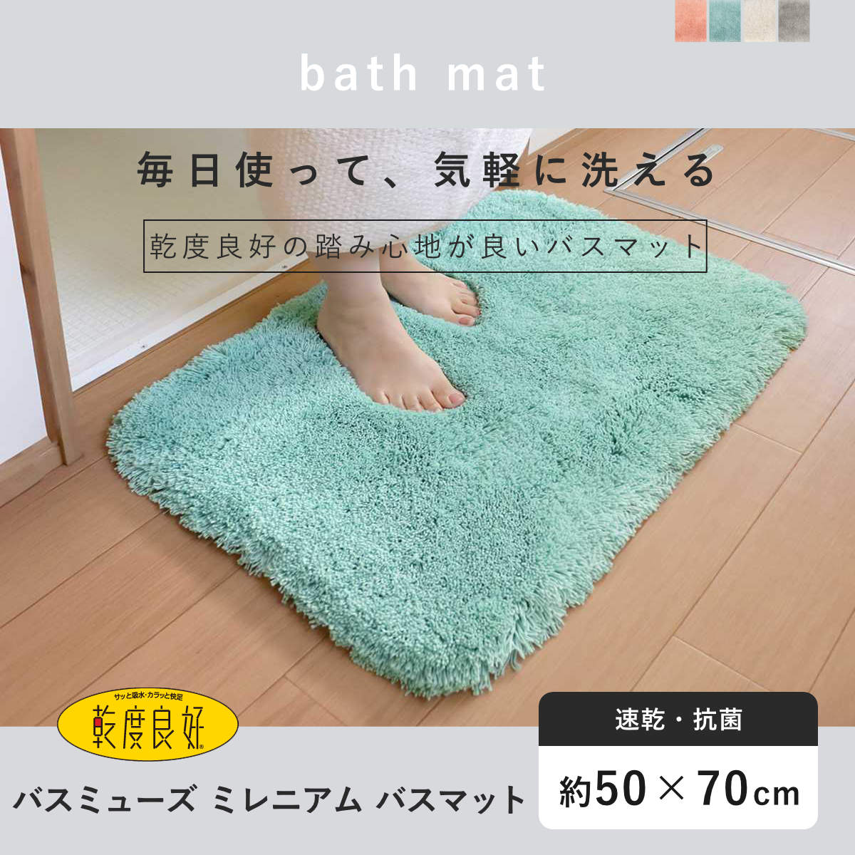 洗っても効果が続く抗菌防臭加工付きで、マット上の菌の増殖を抑制するので、いつまでも衛生的にお使いいただけます。