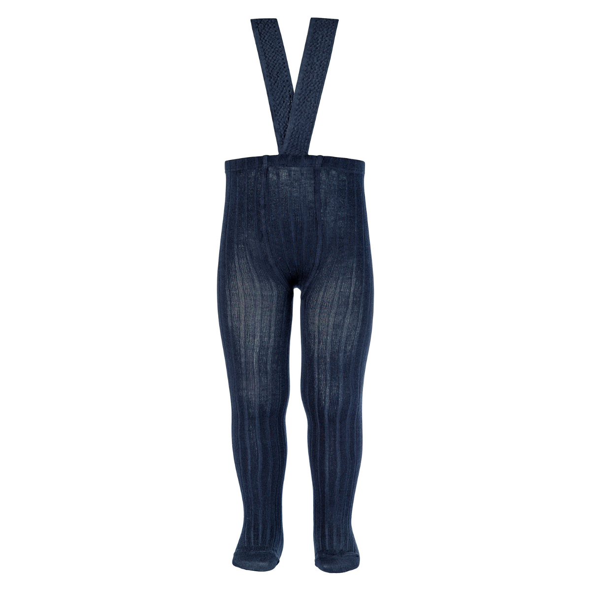 縦のラインが脚をスッキリ見せてくれるサスペンダー付きリブタイツです。サスペンダーはウエスト部分にしっかり固定されているので、あちこち沢山動きまわっても脱げる心配はありません。