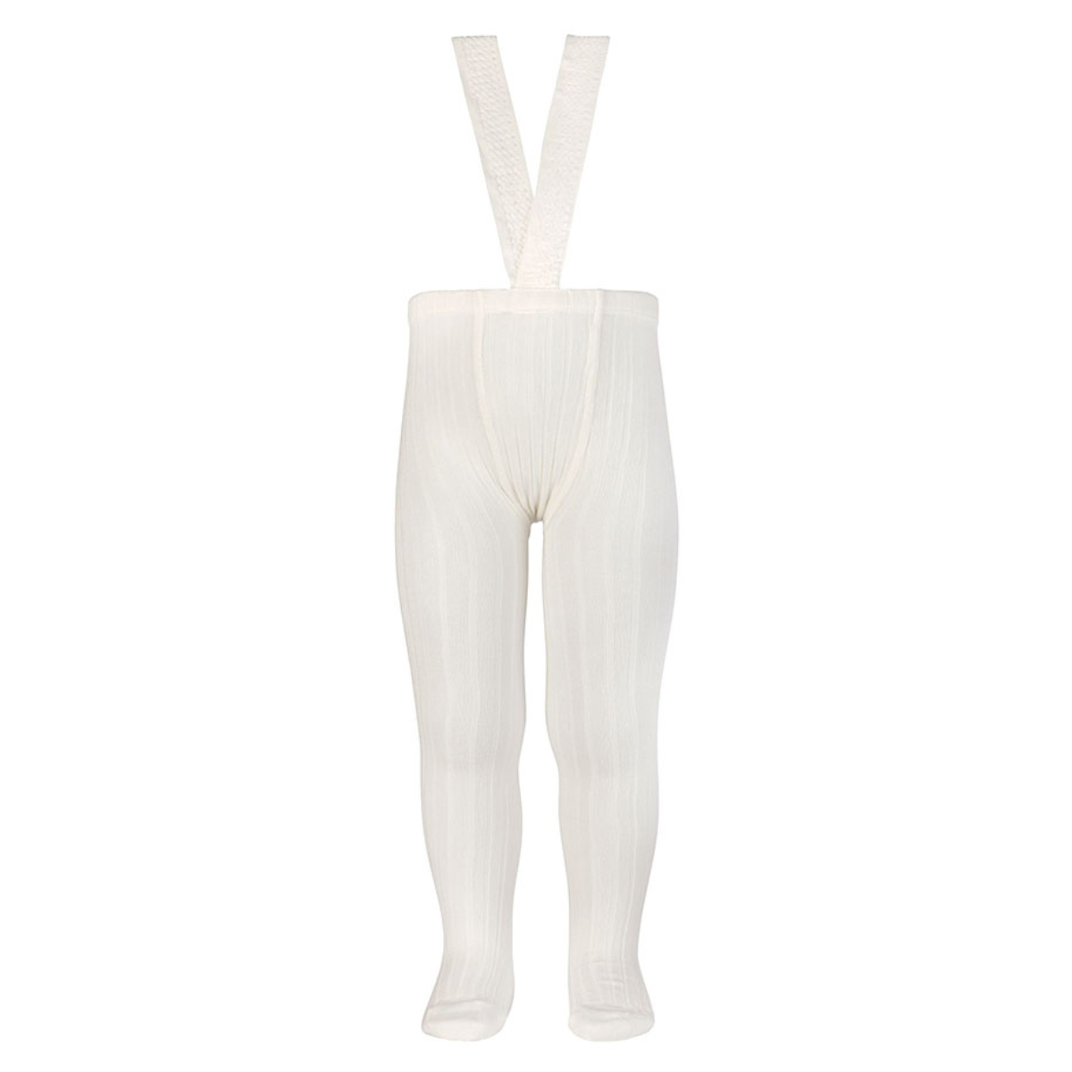 縦のラインが脚をスッキリ見せてくれるサスペンダー付きリブタイツです。サスペンダーはウエスト部分にしっかり固定されているので、あちこち沢山動きまわっても脱げる心配はありません。