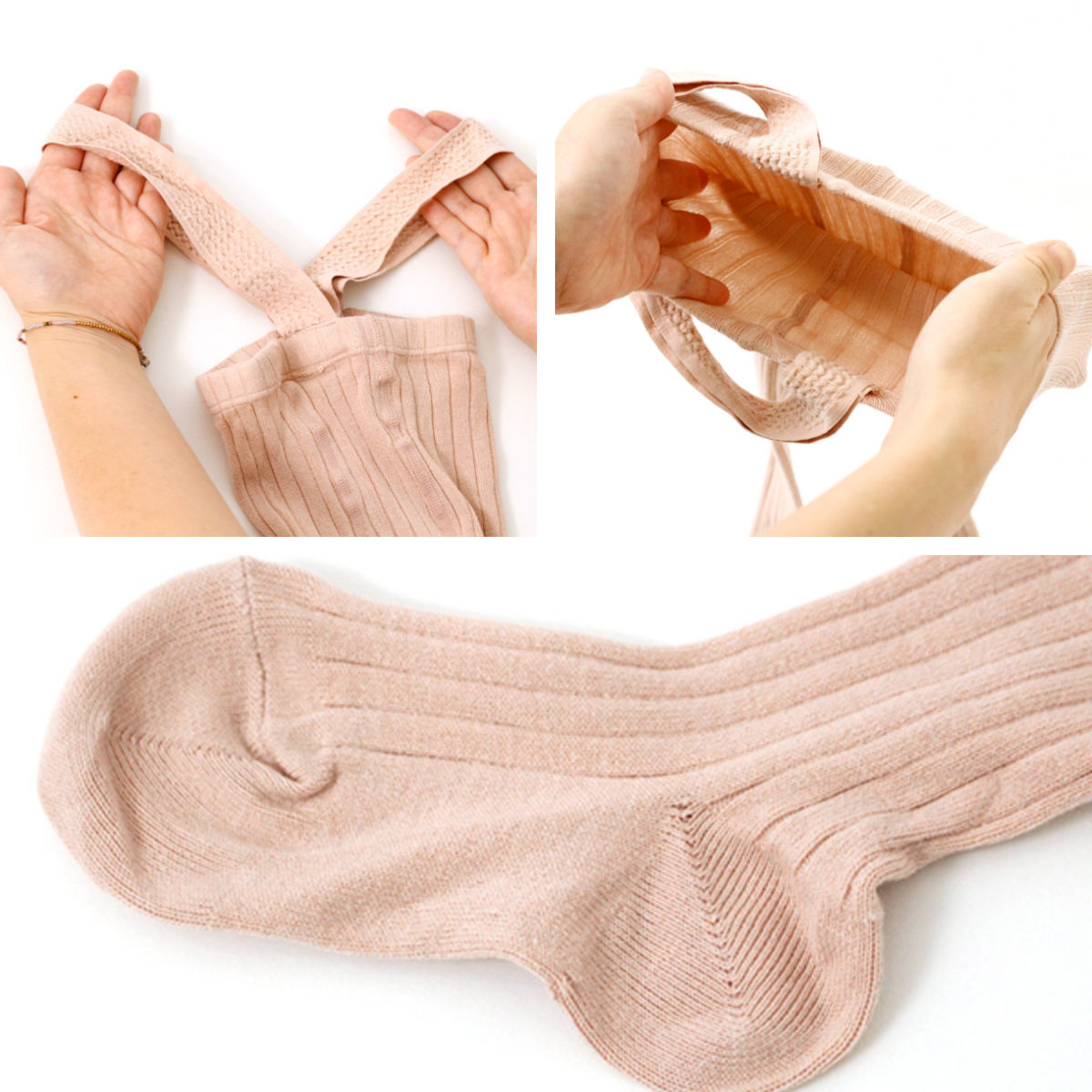 ウエストやサスペンダーには伸縮性のある生地が使用されており、体にぴったりフィットします。また、つま先やかかと部分は丈夫な作りで破れにくく、綺麗な状態で長く着用できます。
