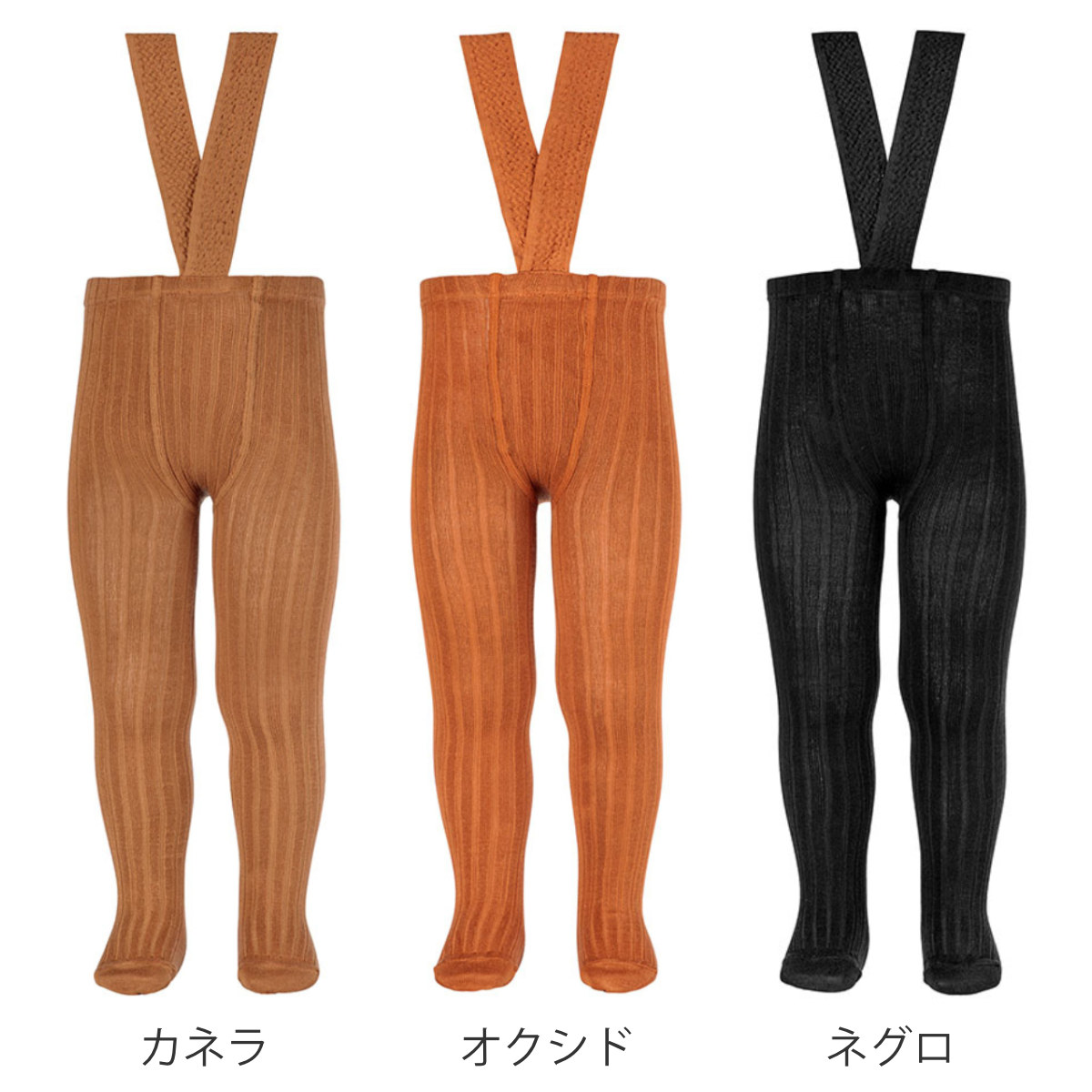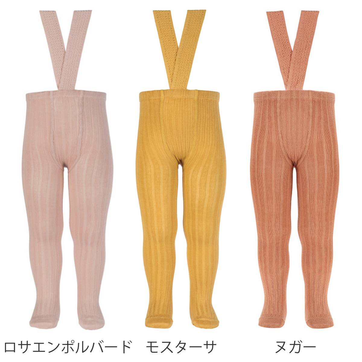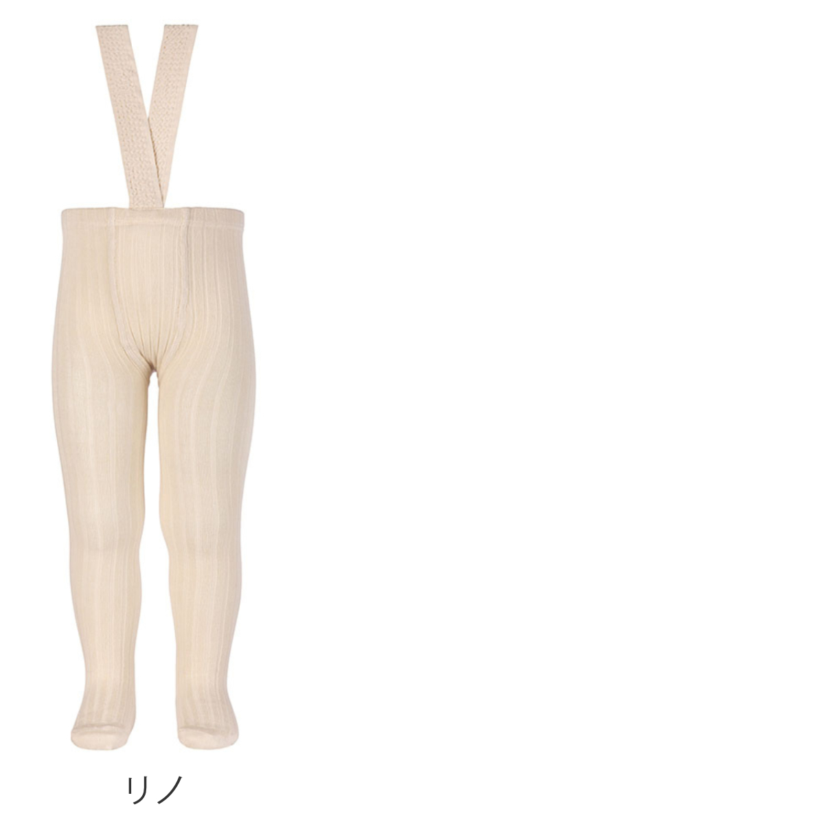 縦のラインが脚をスッキリ見せてくれるサスペンダー付きリブタイツです。サスペンダーはウエスト部分にしっかり固定されているので、あちこち沢山動きまわっても脱げる心配はありません。
