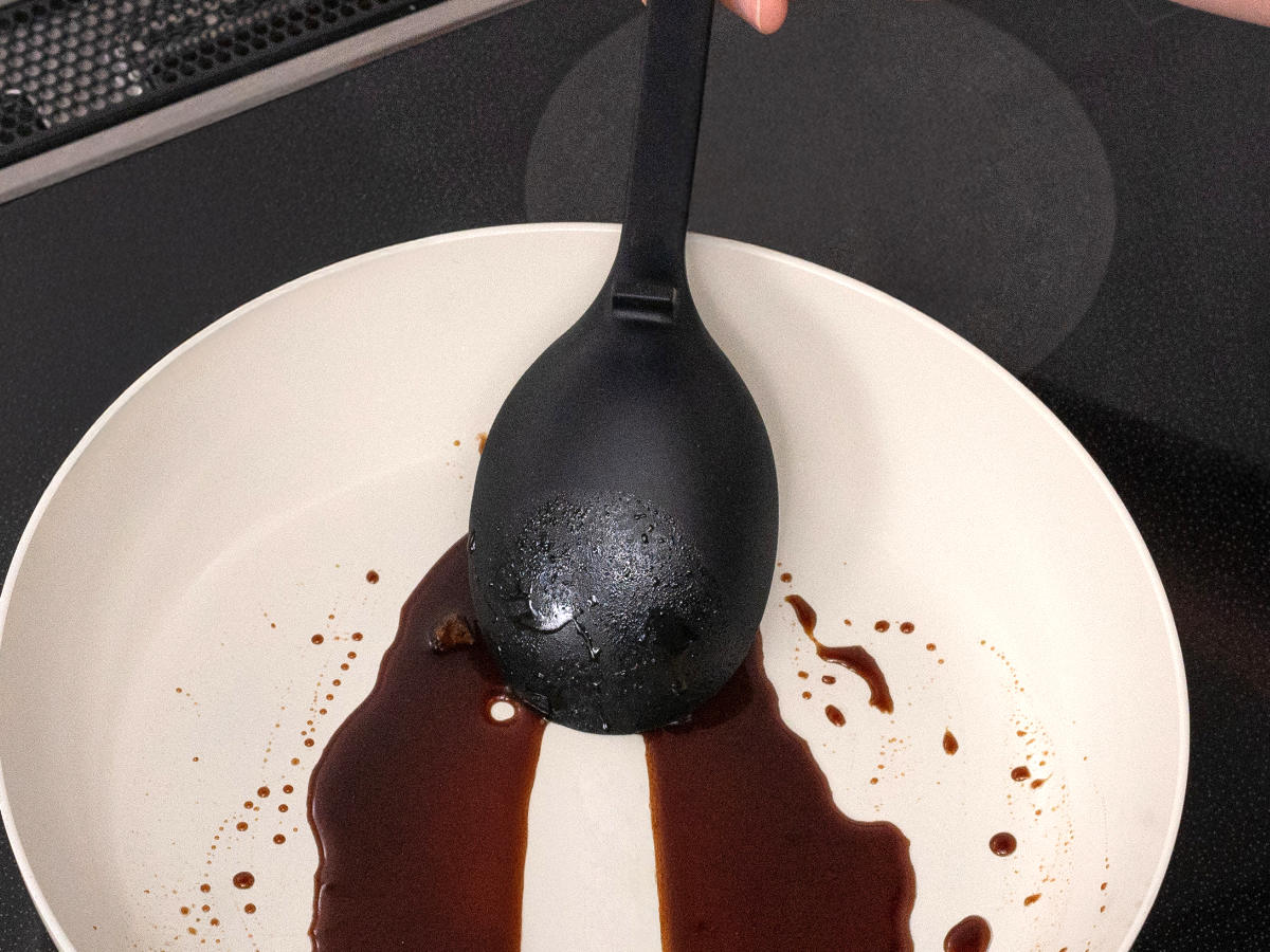 シリコーン素材なので、先端が柔らかくフィットし、残さずキレイにすくえます。フライパンやボウルを傷つけないのも嬉しいポイントです。