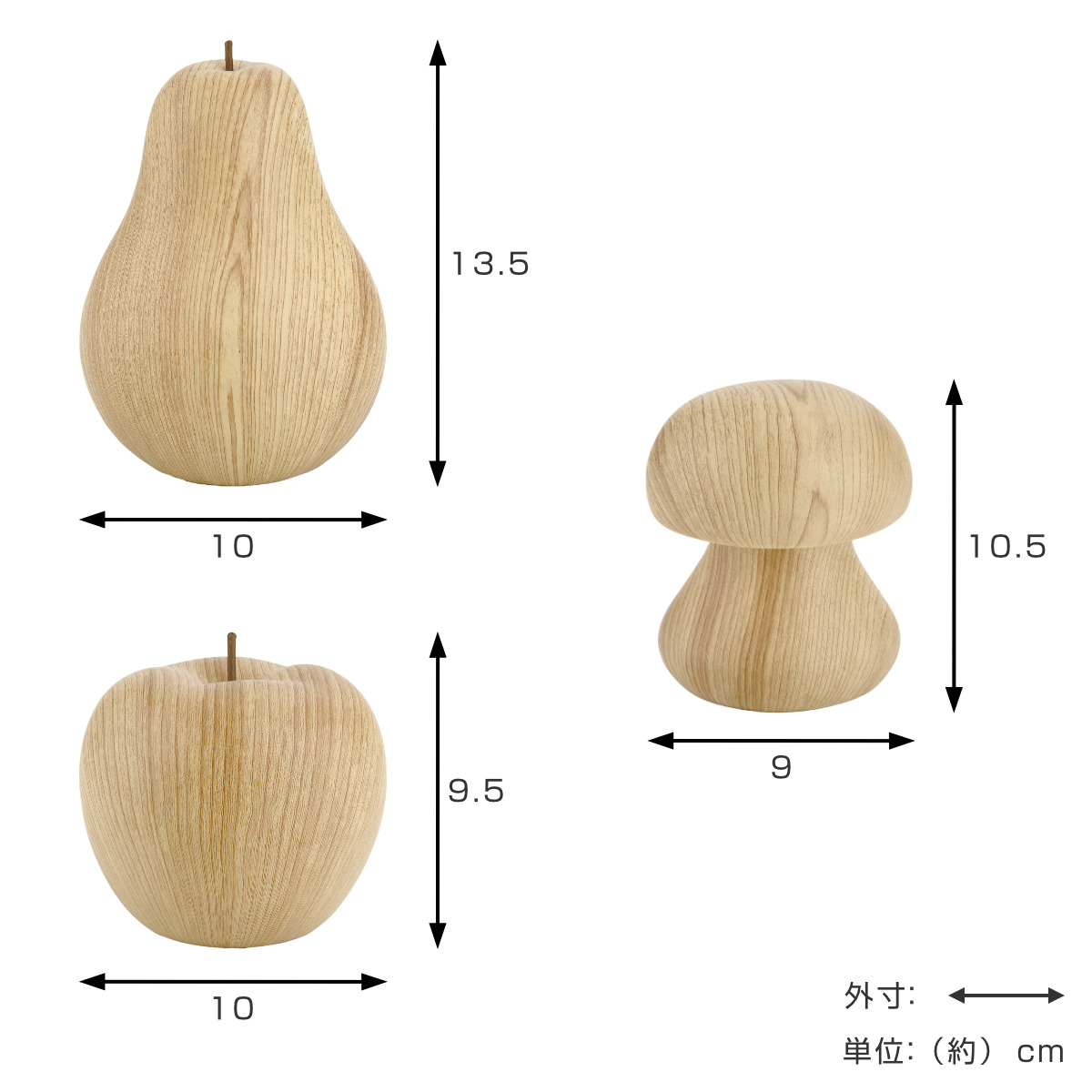 | サイズ | 洋梨:直径10×高さ13.5(cm) リンゴ:直径10×高さ9.5(cm) マッシュルーム:直径9×高さ10.5(cm) |