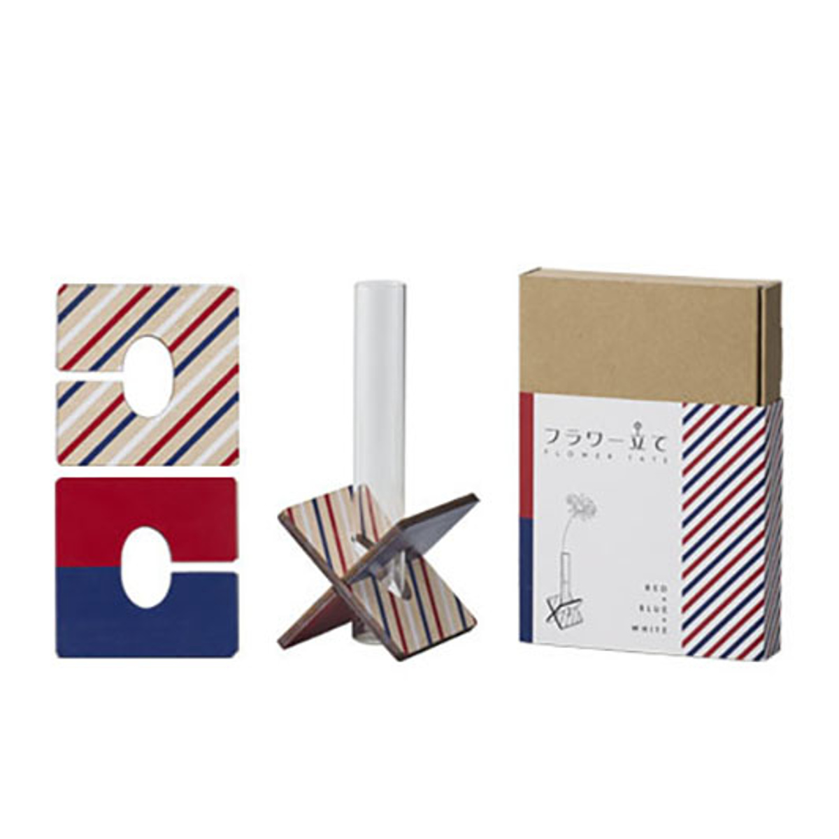 まるで文具のようなキット式になった一輪挿し花瓶です。2枚の木板とガラスシリンダーが箱に入っており、組み立てるとすぐに花が飾れる一輪挿しになります。リモートワークのデスクや子どもの勉強机などに、気軽に飾れます。