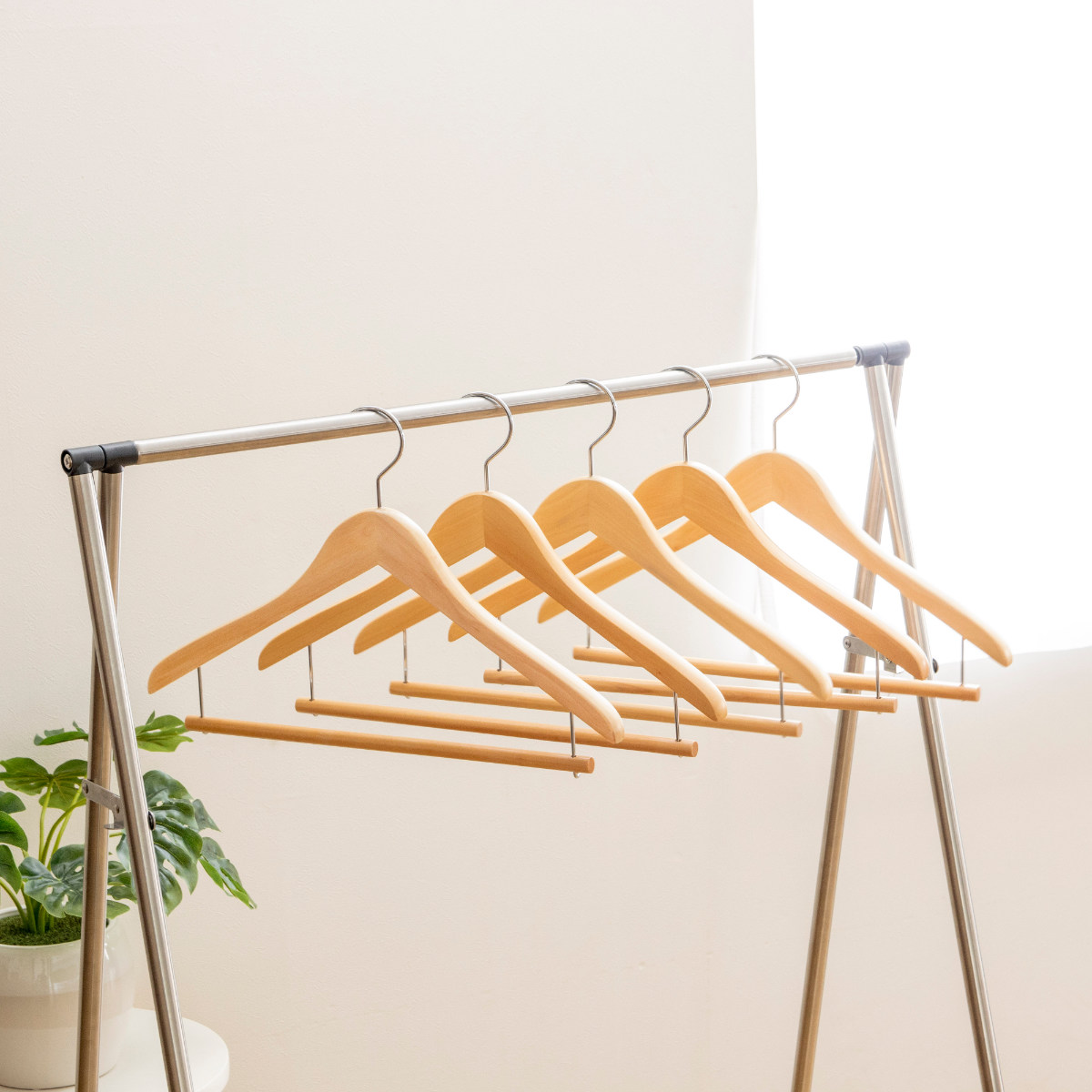 スライド式でバーを動かせるため、衣類をスムーズに掛けることができます。ジャケットやコートなど幅のある衣類も、無理なく掛けられます。