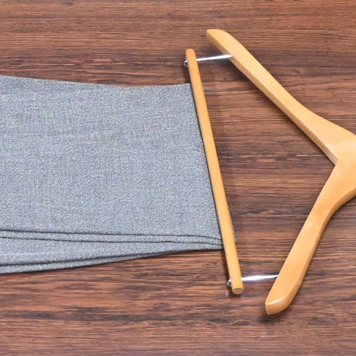 スラックスを掛けられるバーが付いています。バーは上下に動くスライド式で、簡単に掛けることができます。ずり落ちやしわを防ぎ、スラックスをしっかりキープします。