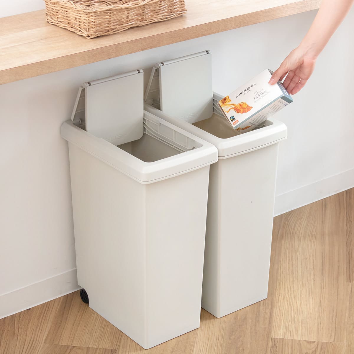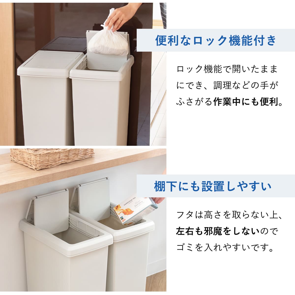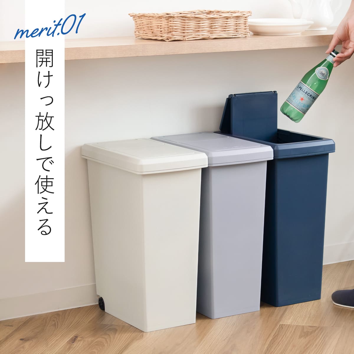 片手でスライドオープン&開いたままロックできるゴミ箱