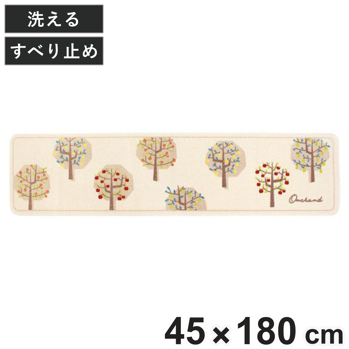 ナチュラルな木々が並んだナチュラルなデザインのマットです。フローリングのキズや汚れ、水はね防止に、こまめにお手入れしたい場所にお使いいただけます。軽くて柔らかいので簡単に畳めて、気軽にお洗濯できます。