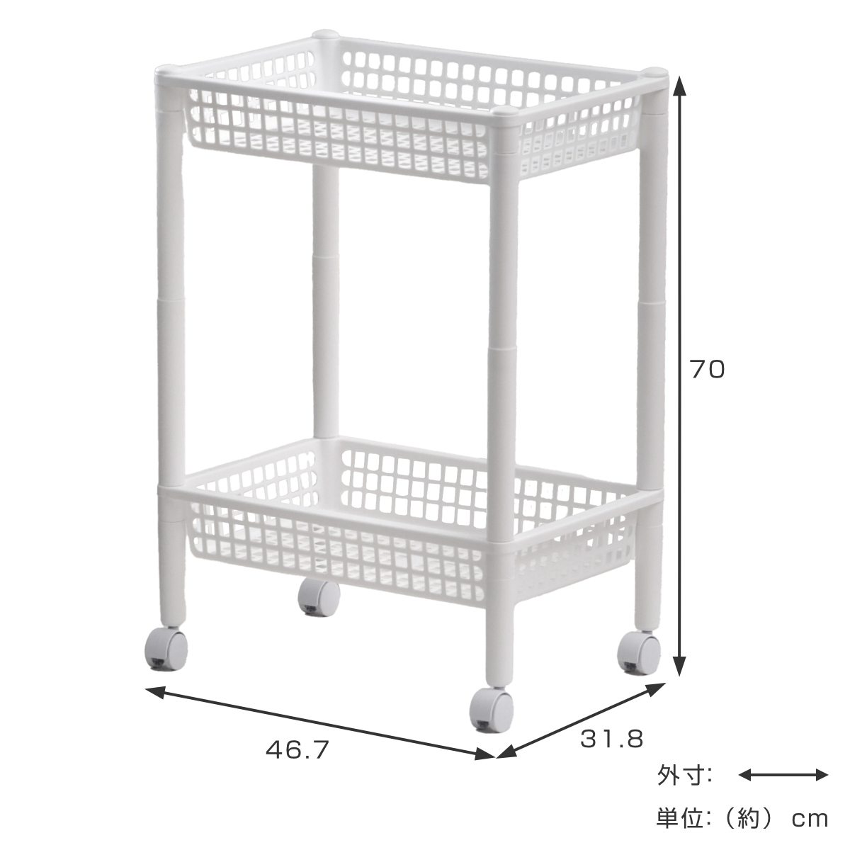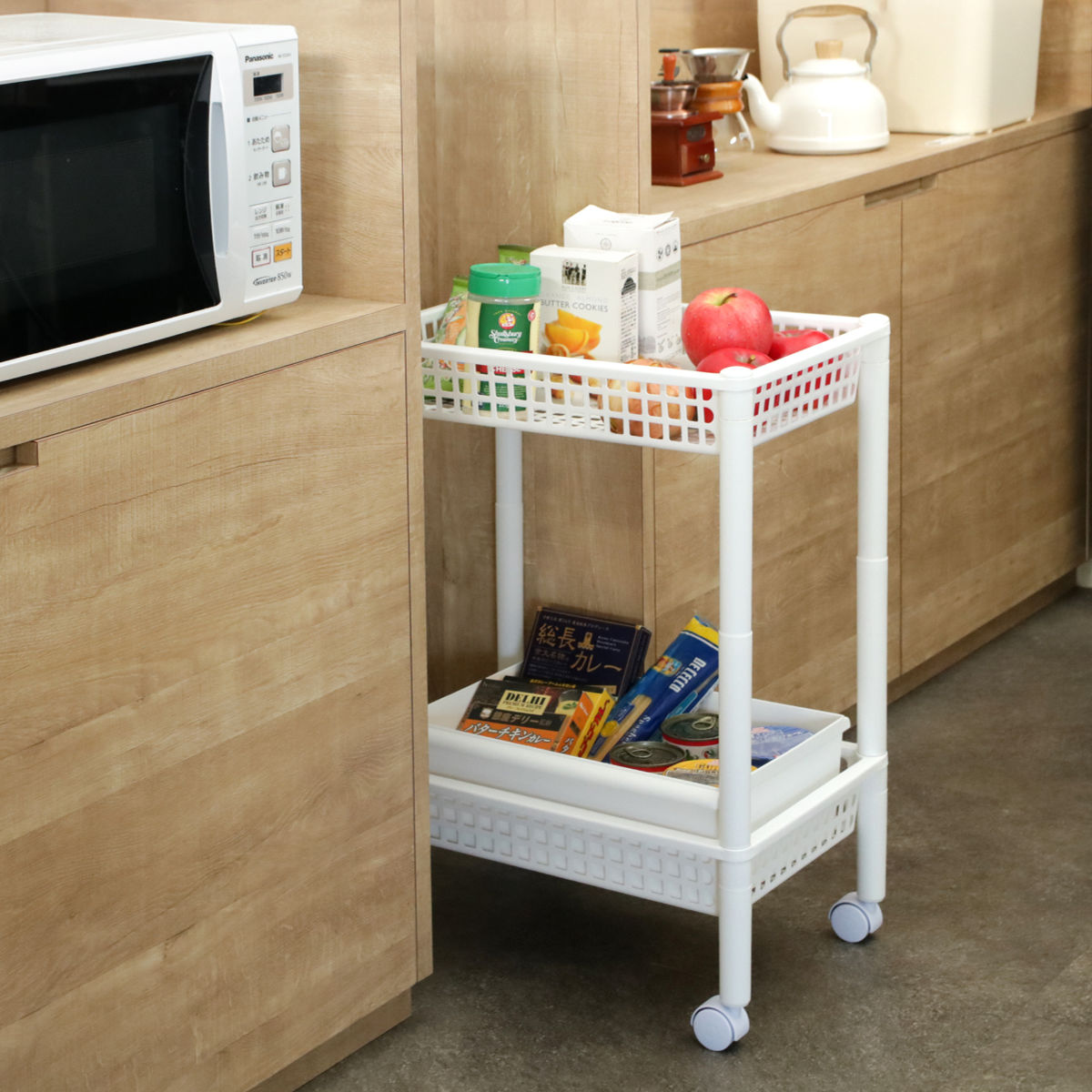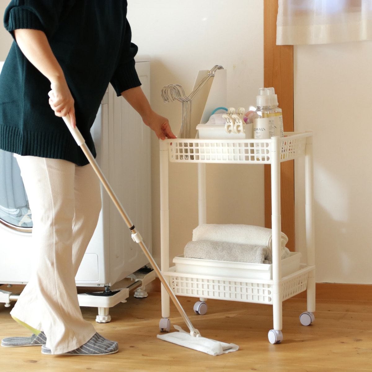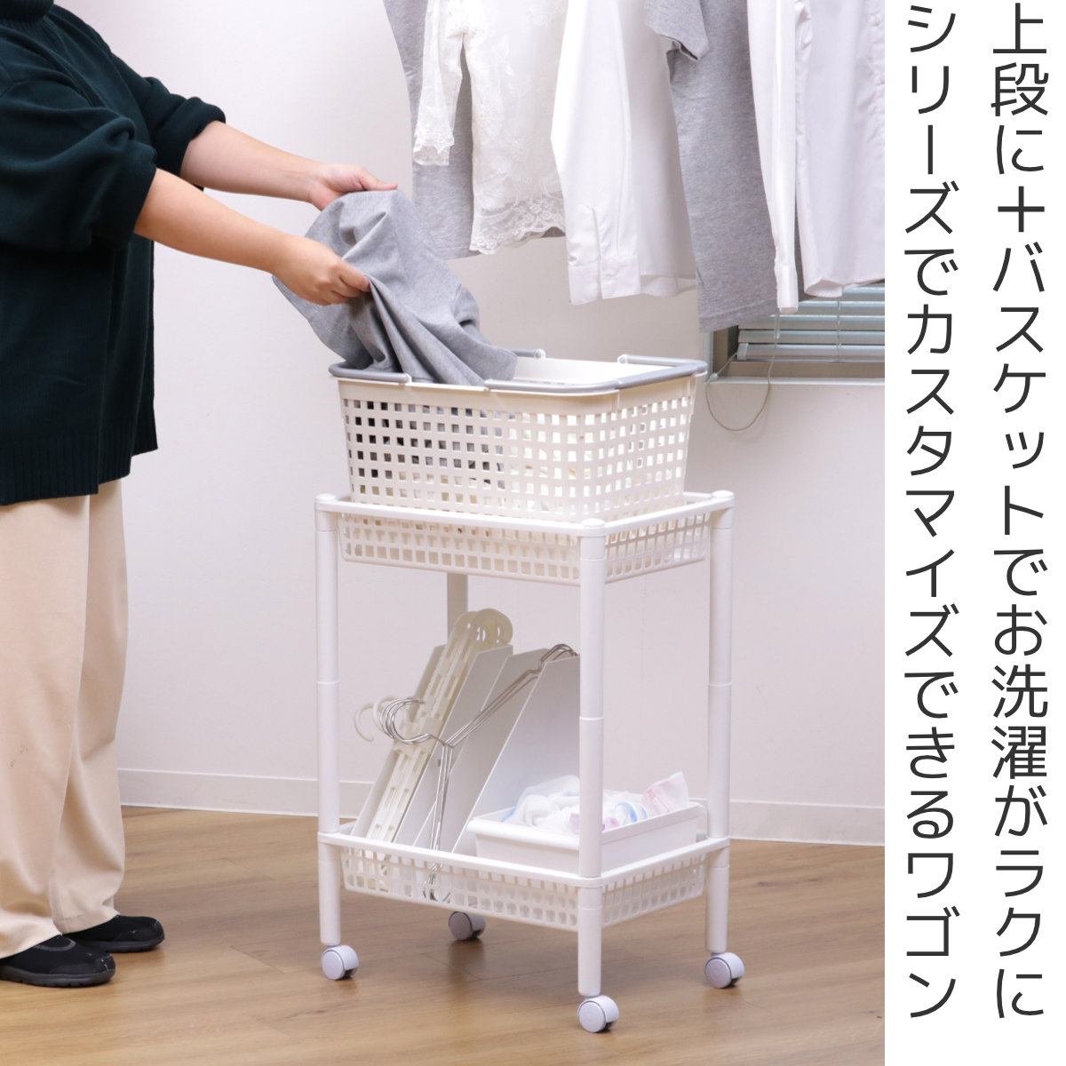 洗濯機周りのサニタリー用品の収納に便利な、2段タイプのランドリーワゴンです。タオルやバス用品、洗濯用品の収納はもちろん、キッチン周りの小物や食品ストックの収納としてもお使いいただけます。