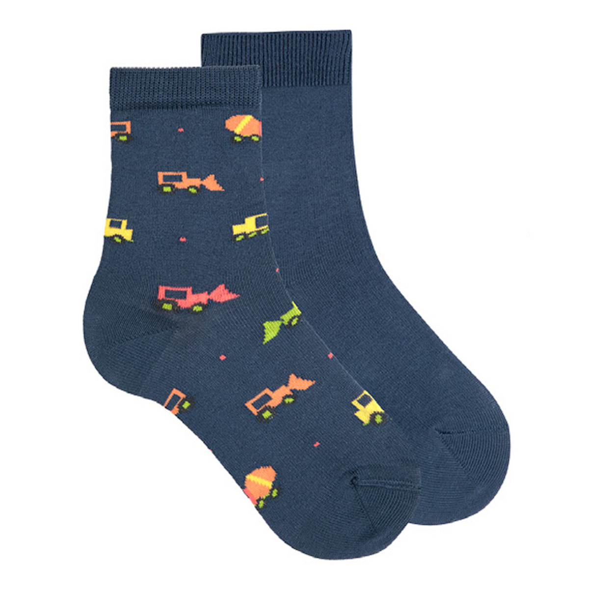 ●カラフルなトラック柄のソックス1足とシンプルな無地のソックス1足の2足セットです。