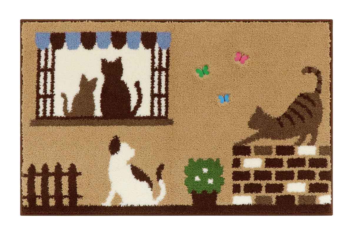 気のままに過ごす猫たちのシルエットが可愛らしくデザインされたマットです。キッチンでの使用はもちろん、玄関マットやインテリアマットとしてもピッタリなサイズ感。インテリアのアクセントとしてお部屋を明るく楽しい雰囲気にしてくれます。