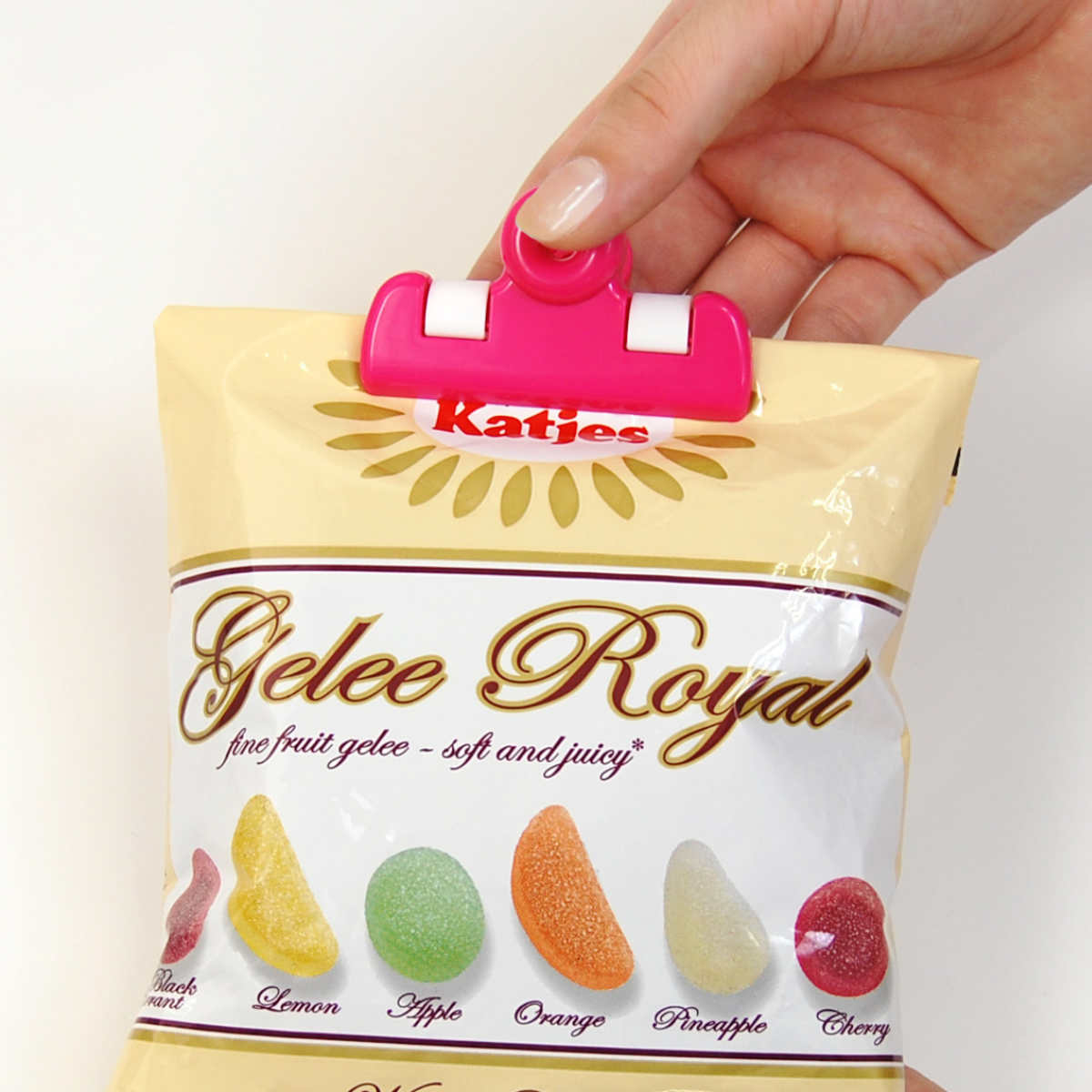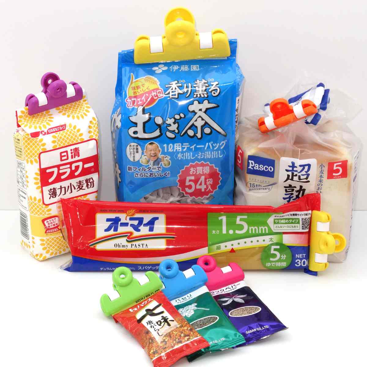 ![]() バネまでオールプラスチック、キッチンで活躍するミニクリップ | ![]() バネまでオールプラスチック、食品の大袋もとめられるワイドクリップ |