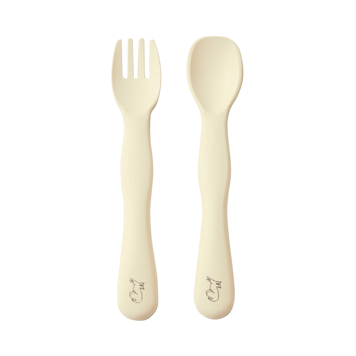可愛いどーぶつのイラストが描かれたスプーンとフォークのセットです。お子様自身が使いやすい形状で、自分で食べたい意欲を育ててくれます。