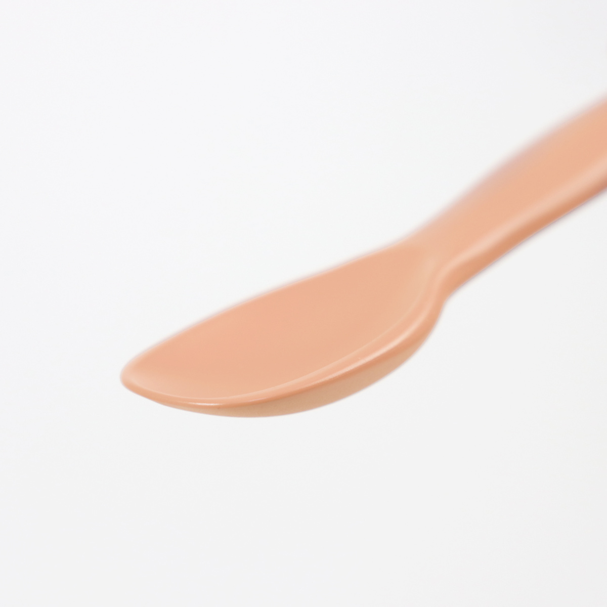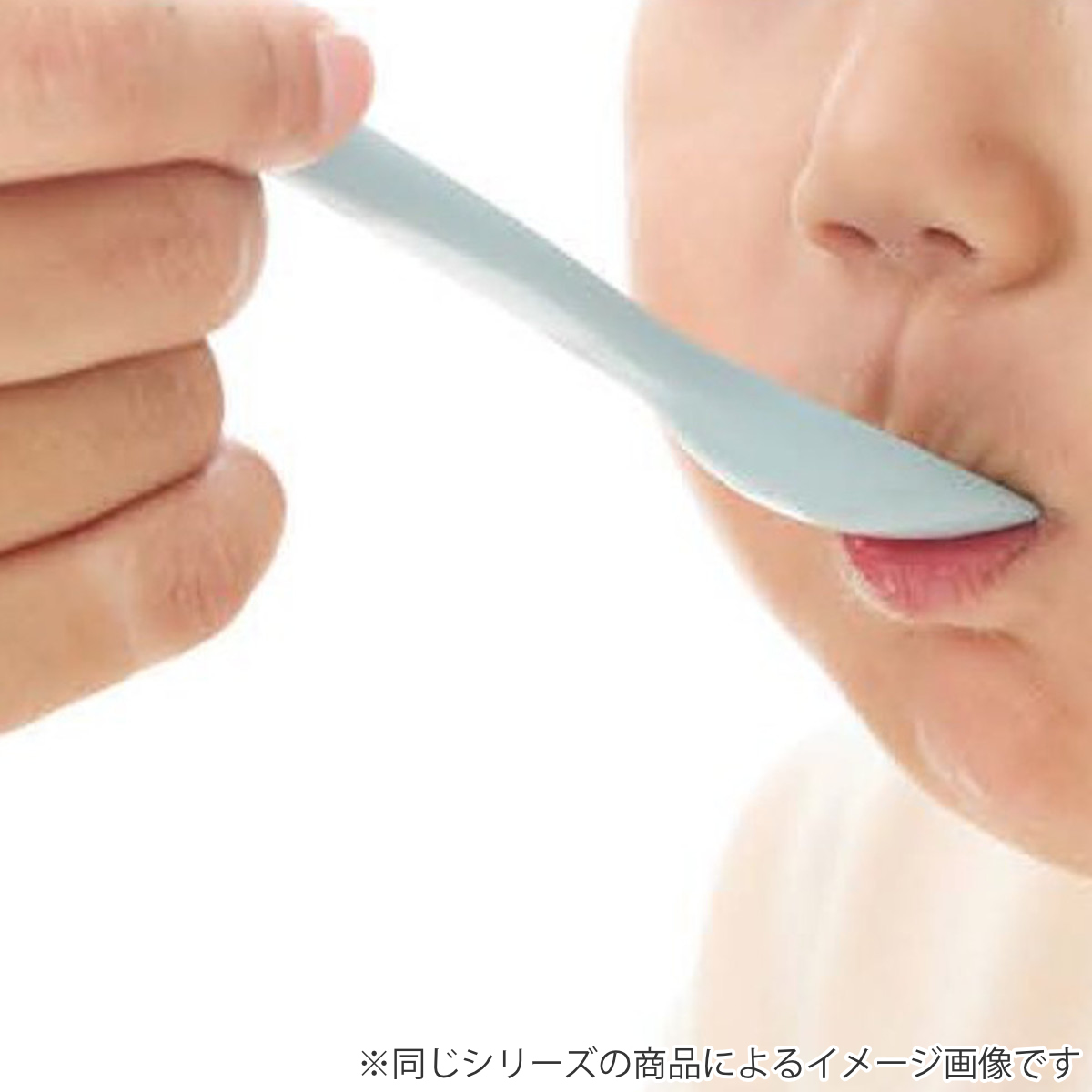 スプーンの先は平らになっているので、コーンやそぼろなど細かい食材でもスコップのようにすくえます。握る部分は波状になっていて手にフィットしやすい形状です。