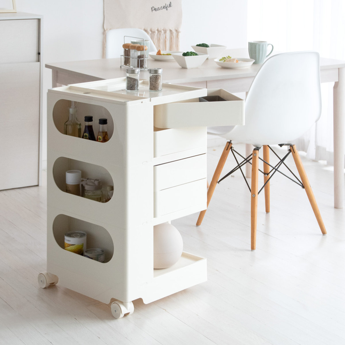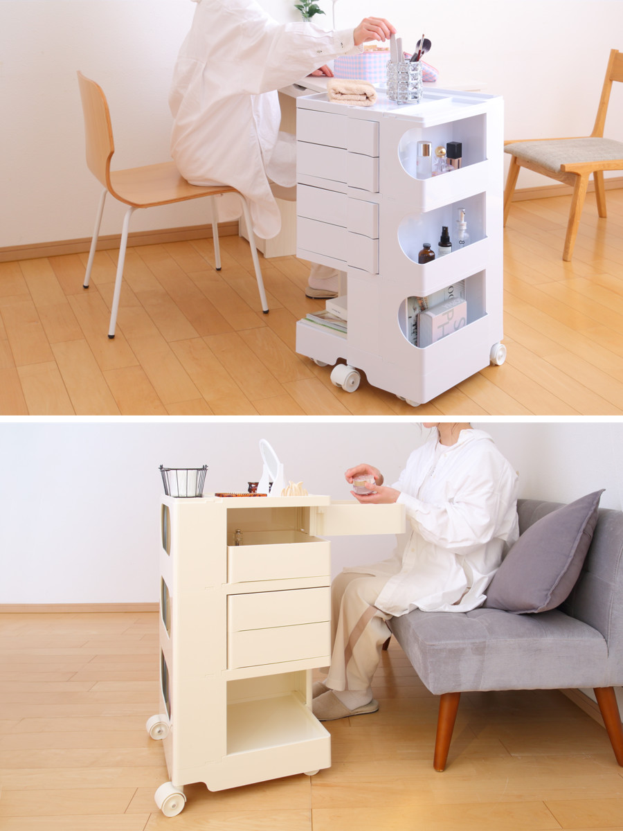 コロンと丸みのあるデザインが可愛いマルチワゴンです。シンプルで機能性に優れたワゴンは、リビングやキッチンはもちろん、寝室や洗面所、玄関などお家の様々な場所で活躍します。