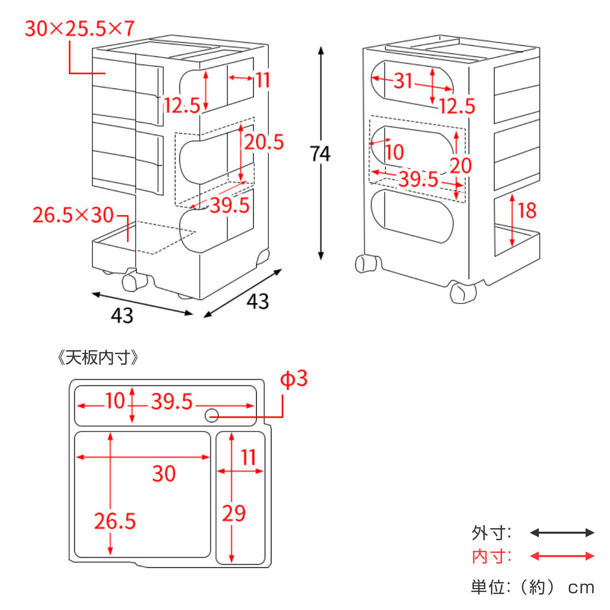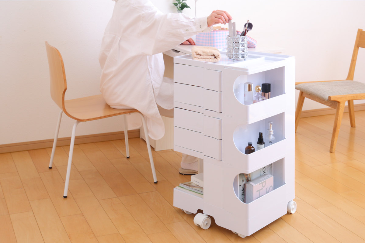 高さ74cmで、デスクサイドにぴったりのサイズ感。ネイルサロンで道具を整理するワゴンとしてや、ドレッサーとしてもちょうど良い高さです。収納スペースが豊富なので、家中のいろいろな場所での整理整頓にぴったりです。