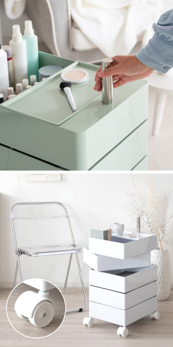 高さ82cmで、デスクサイドにぴったりのサイズ感。ネイルサロンで道具を整理するワゴンとしてや、ドレッサーとしてもちょうど良い高さです。収納スペースが豊富なので、家中のいろいろな場所での整理整頓にぴったりです。