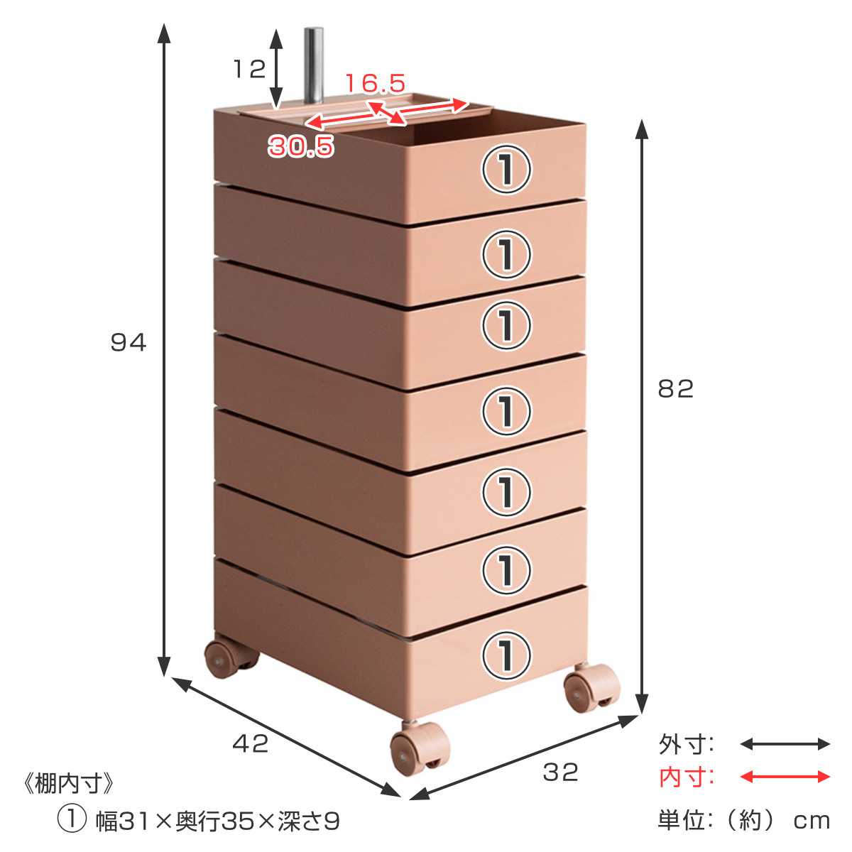 | サイズ | 約 幅32×奥行42×高さ94(cm) |