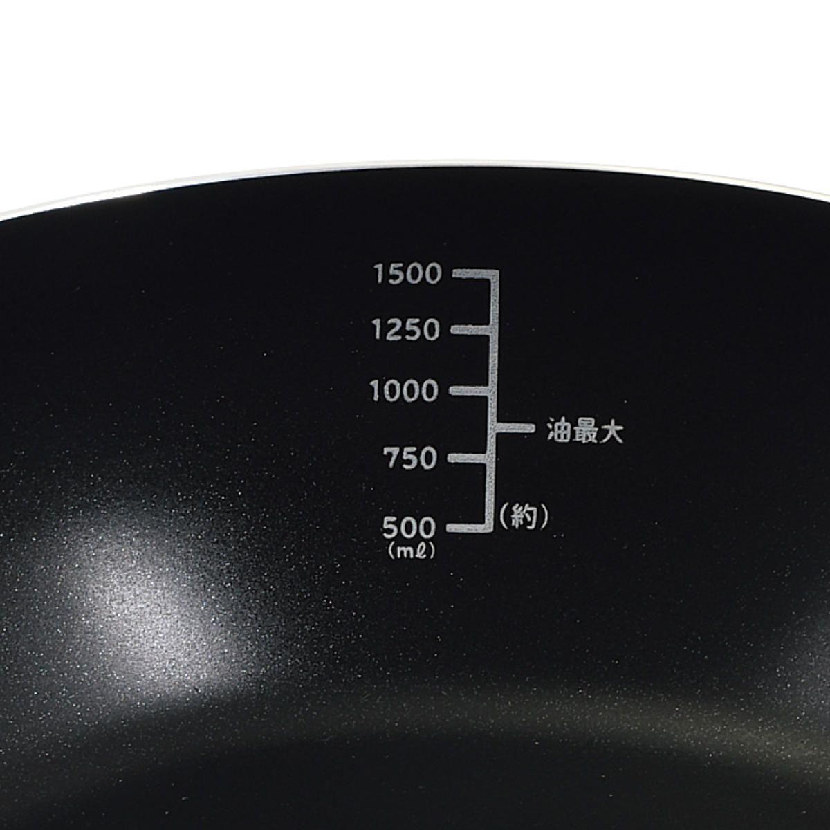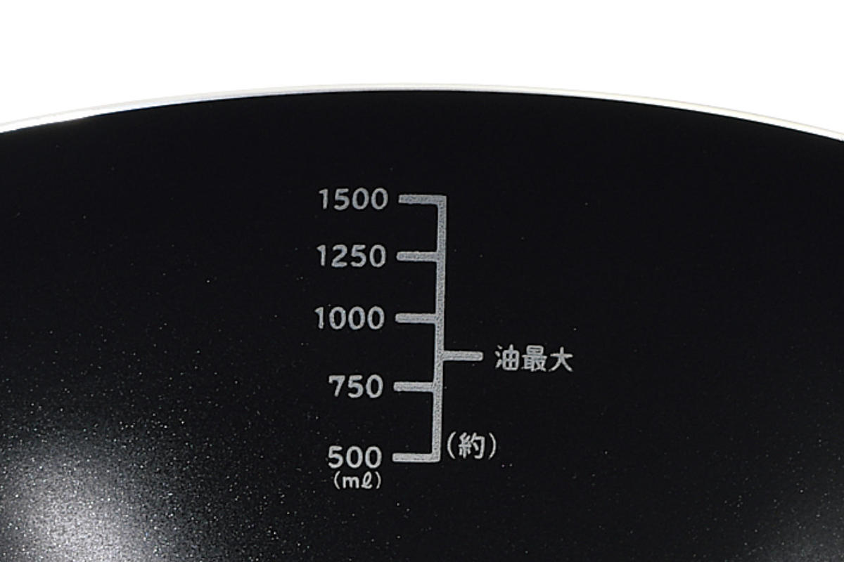 計量カップを使わずに必要な分の水分を注ぐことができ、最大油量も記載されているので、揚げ物をする時の目安になります。