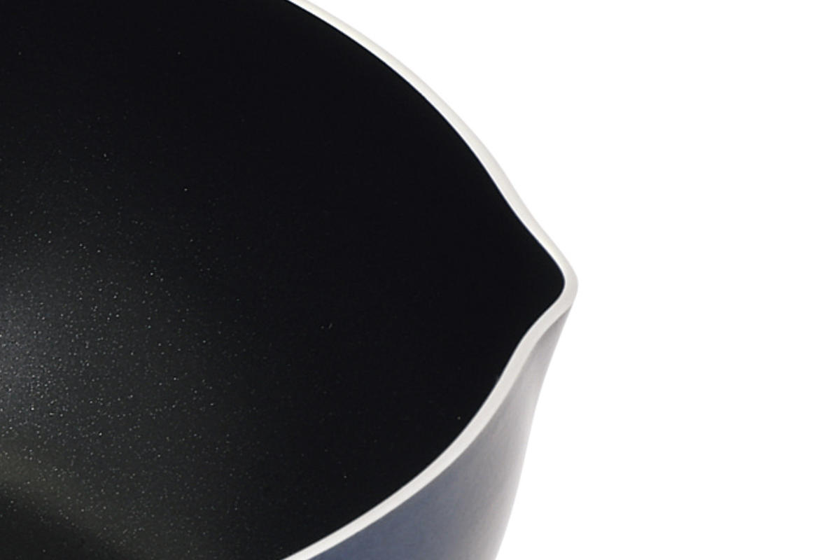 フライパンの両サイドに注ぎ口があるので、お湯を流したり、汁気のある料理の盛り付けに便利です。
