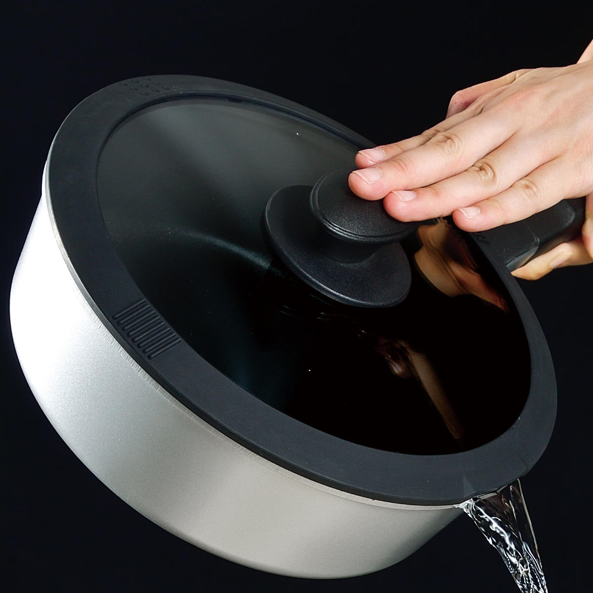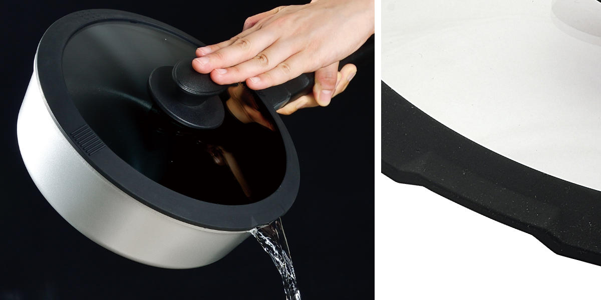 ●フチはシリコンゴムでカバーされているので鍋に優しくフィットし、キズがつきにくいです。