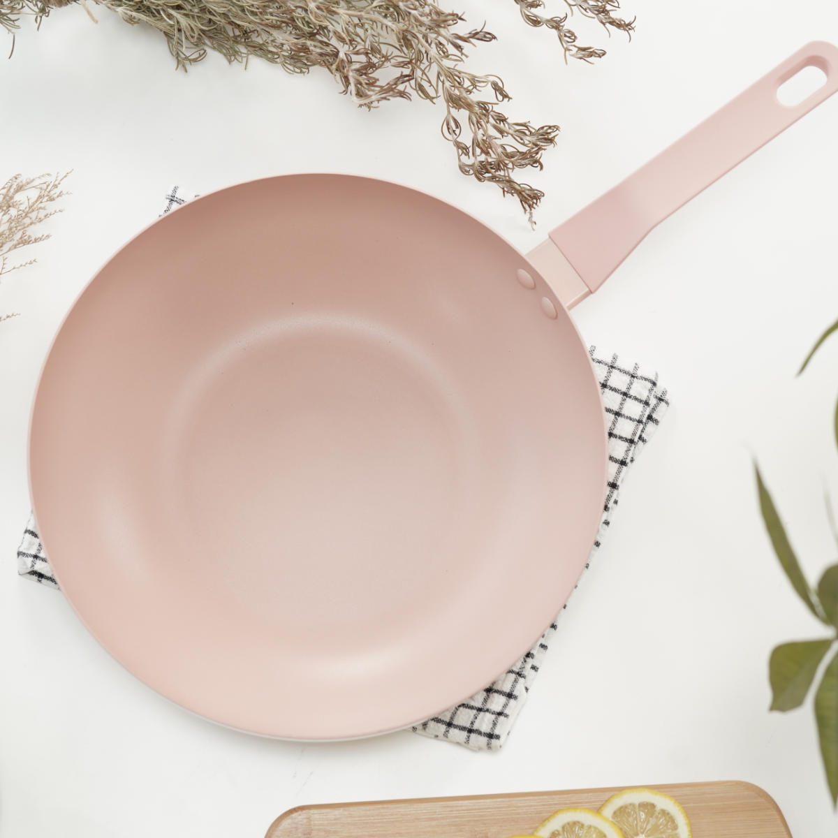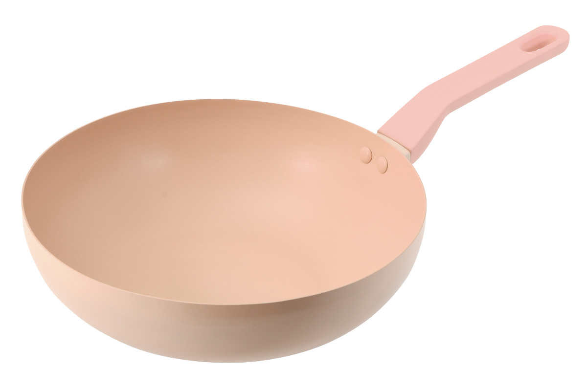 外面だけでなく、内面にもペールピンクを採用したフライパンです。お料理の焼き具合やスープの濃さを確認しやすいカラーです。