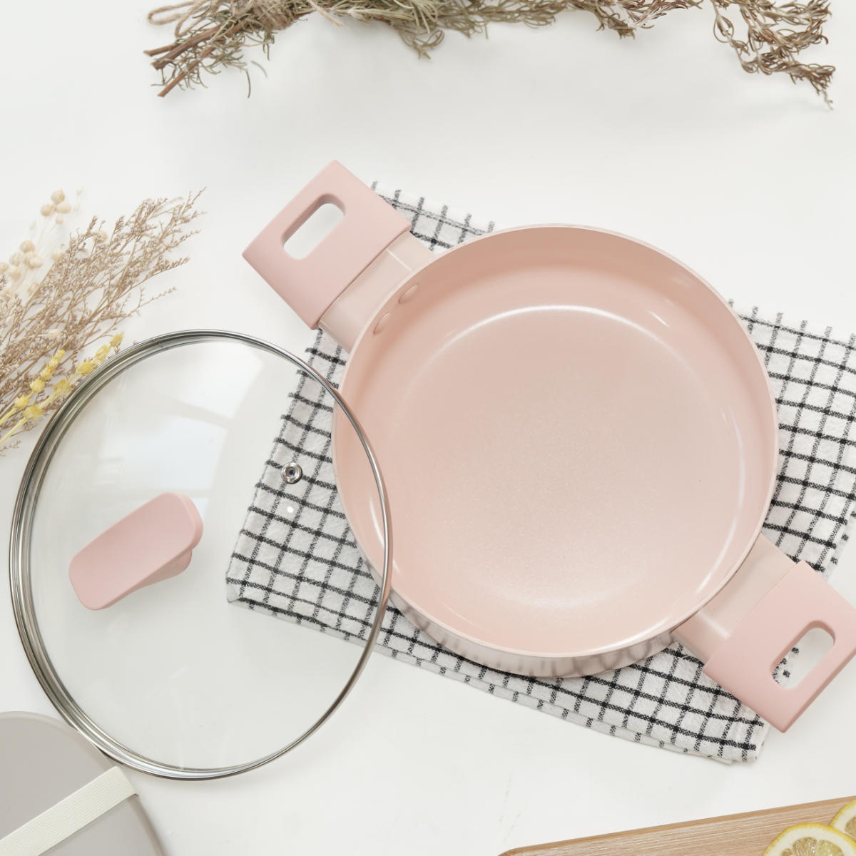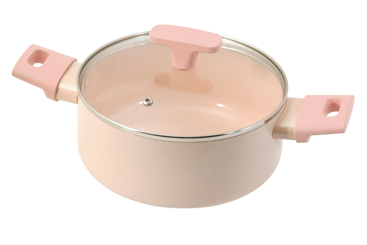 外面だけでなく、内面にもペールピンクを採用した鍋です。お料理の焼き具合やスープの濃さを確認しやすいカラーです。