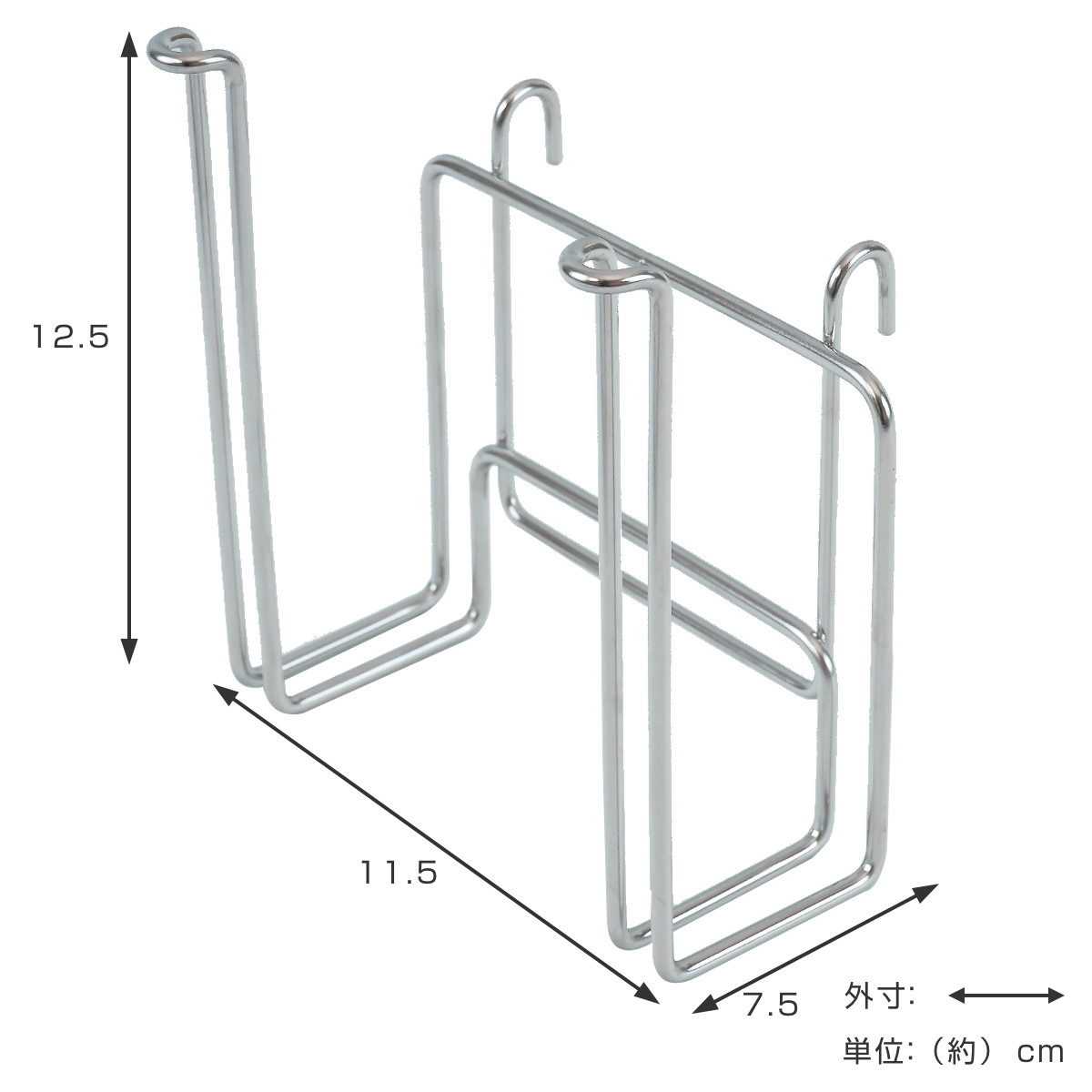 フックで引っ掛けるだけの簡単取付です。手に取りやすい場所、掛ける物の大きさなどに合わせてお好みの位置にお取り付けいただけます。