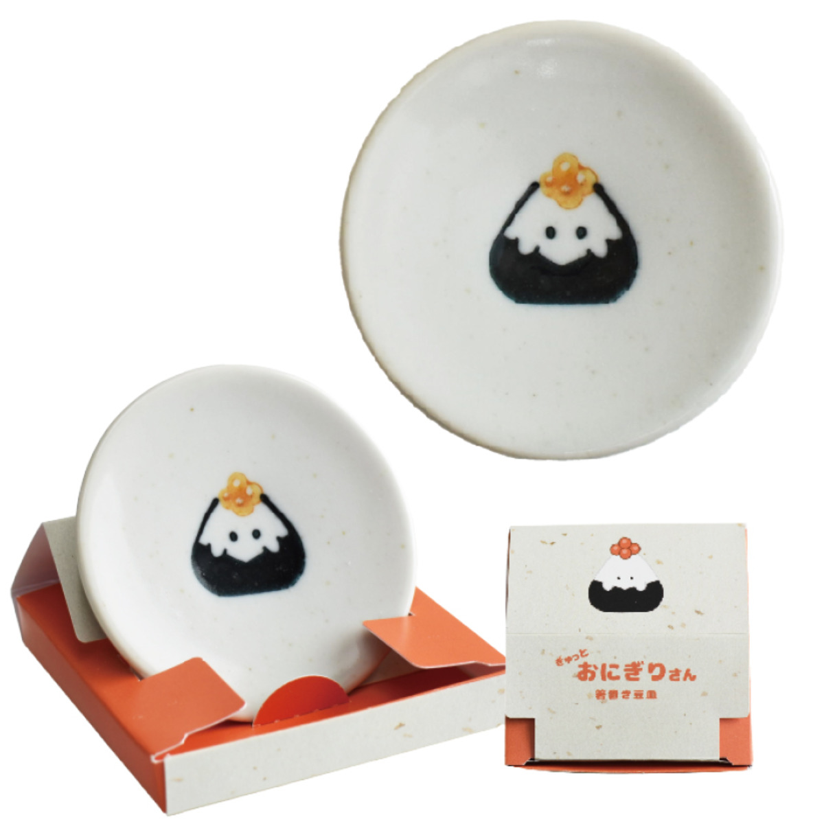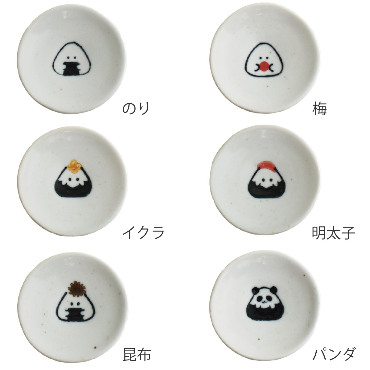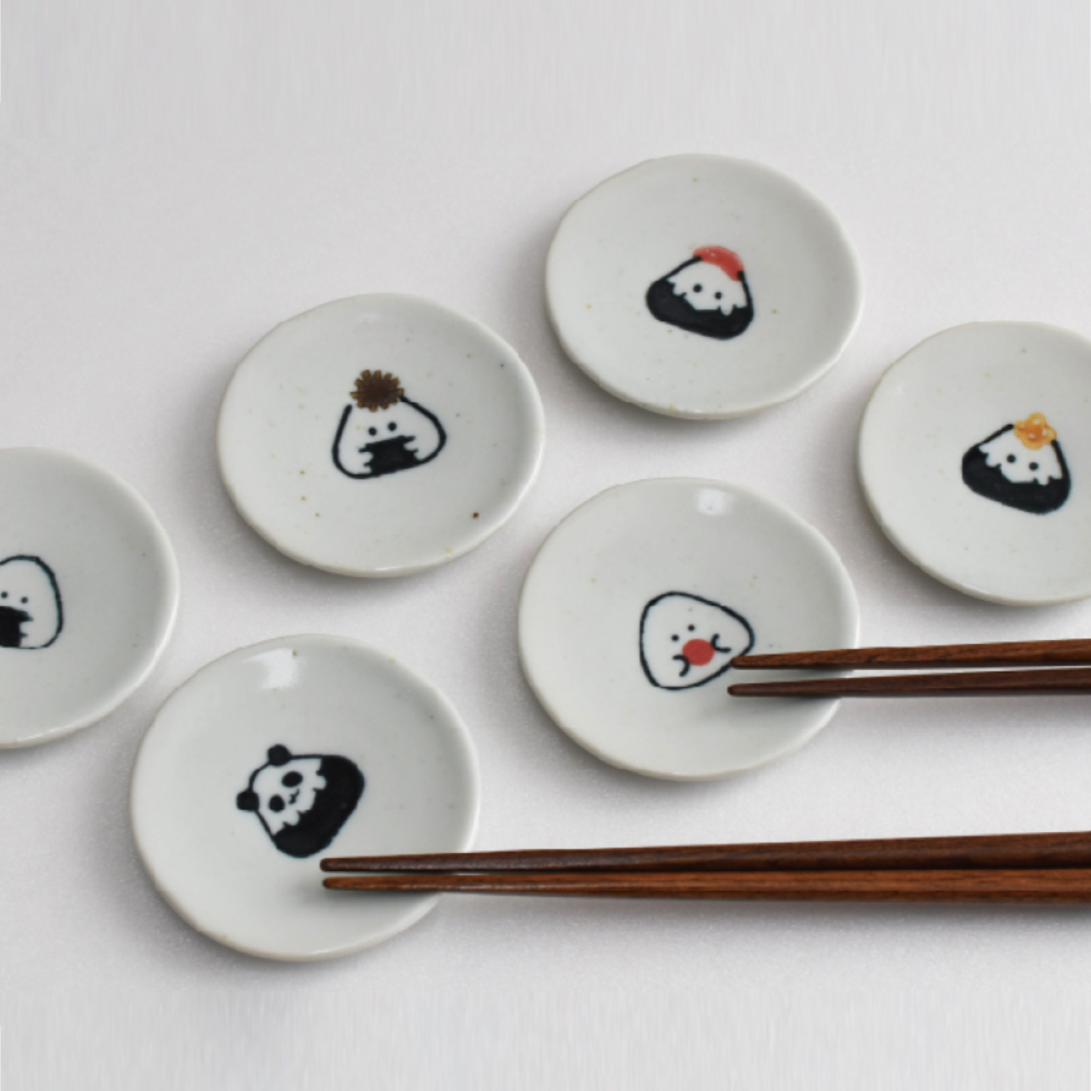 手のひらサイズの箸置きとしても使える豆皿です。おにぎりさんにいろんな具がのっているデザインが愛らしく、選ぶのが楽しくなるようなお皿です。
