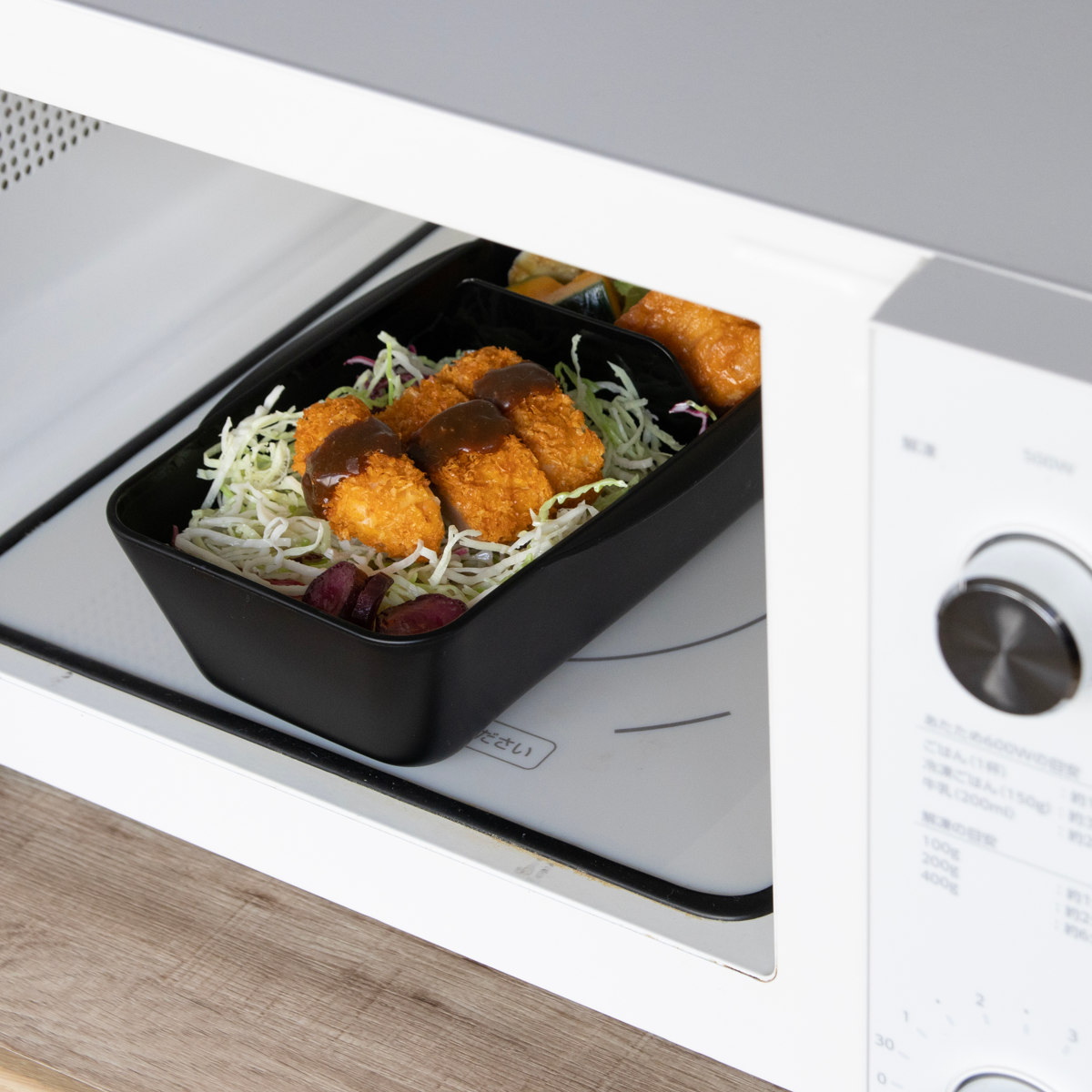 蓋を外せば電子レンジをお使いいただけるのでいつでも温かいお弁当を食べることができます。