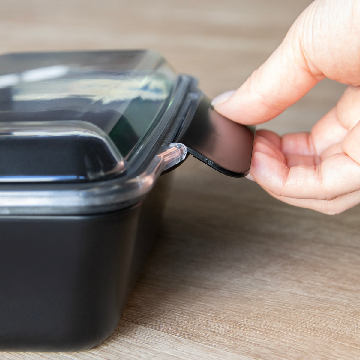 スリムボディ、手にフィットする曲線など、片手で持って食べやすい工夫が沢山施されています。屋外や車の中などテーブルがない場所でも、気軽にランチを楽しめます。