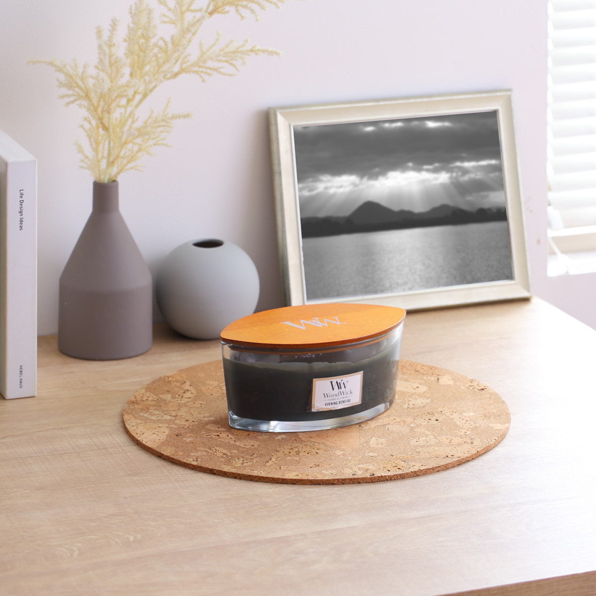 食卓だけでなく、キャンドルやフラワーベースなどを飾るディスプレイトレイとしてもおすすめです。コルクの風合いが雑貨を引き立て、木・陶器・ガラスなど上質な素材にも美しく調和します。