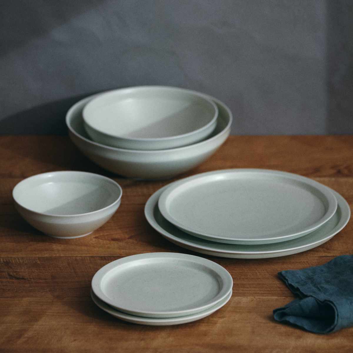 額縁のようなリムが食材を引き立て、和洋中どんな料理とも相性の良いフォルムです。熟練の陶芸家による細部までこだわった、削りを効かせたデザインです。