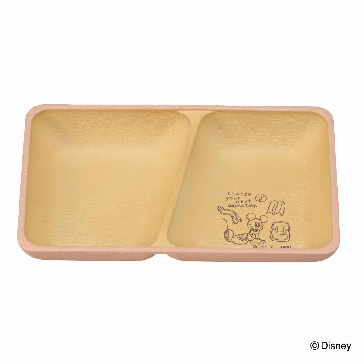 ●ミッキーたちと一緒に食事が愉しくなる2つの仕切りがあるスクエアプレート21.5cmです。