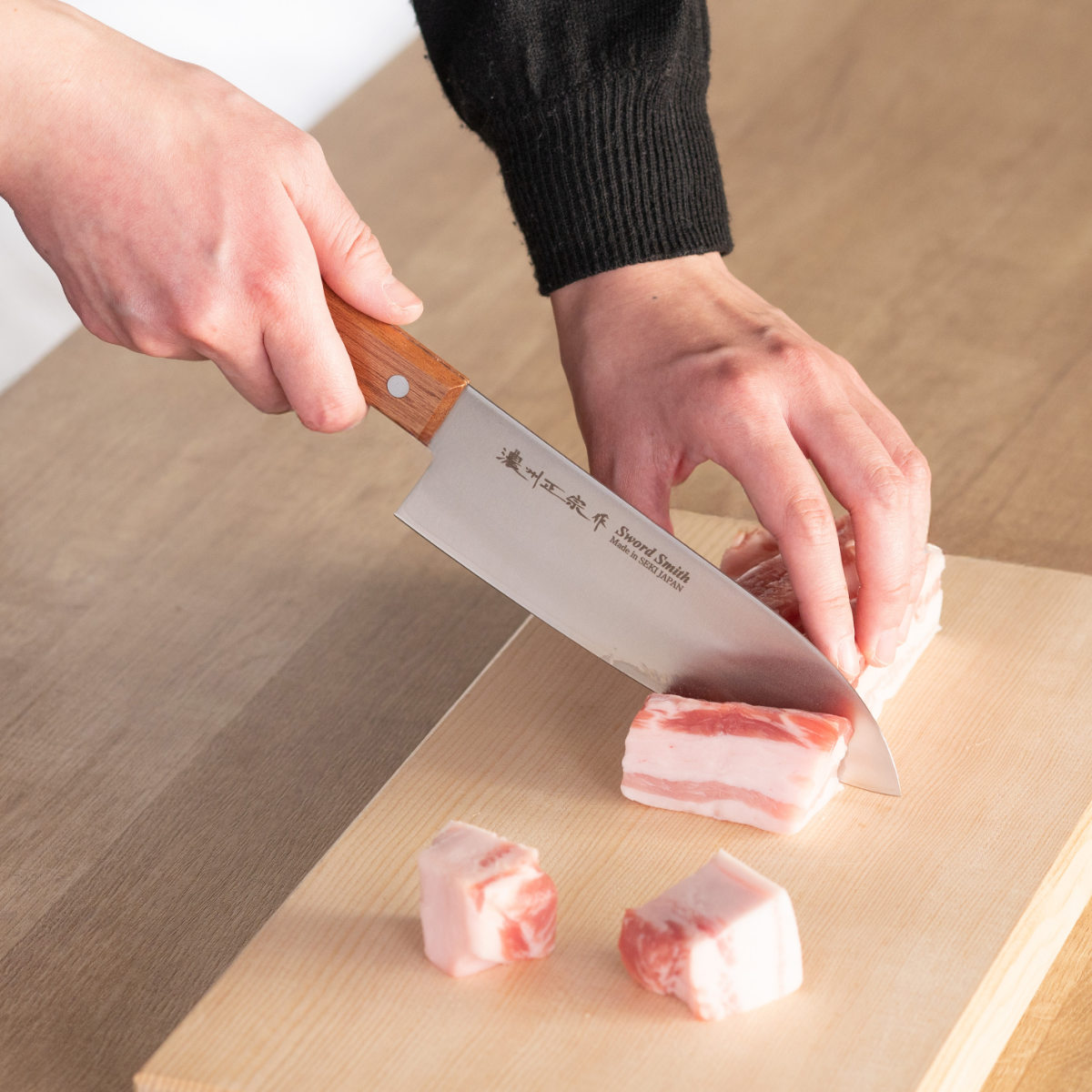 刃が薄く作られているため切れ味が良く、少ない抵抗で楽にカットできます。芯材に使われている8A鋼は、刃こぼれしにくい・研ぎやすいといった特徴を持ち、お手入れが簡単なのも魅力です。