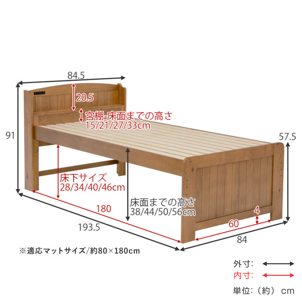| 注意事項 | ※商品ページ内には別の商品を含む画像を使用しています ※天然木を使用している為、1点1点色合いや風合いが異なります ※マットレス、布団は付属しておりません |