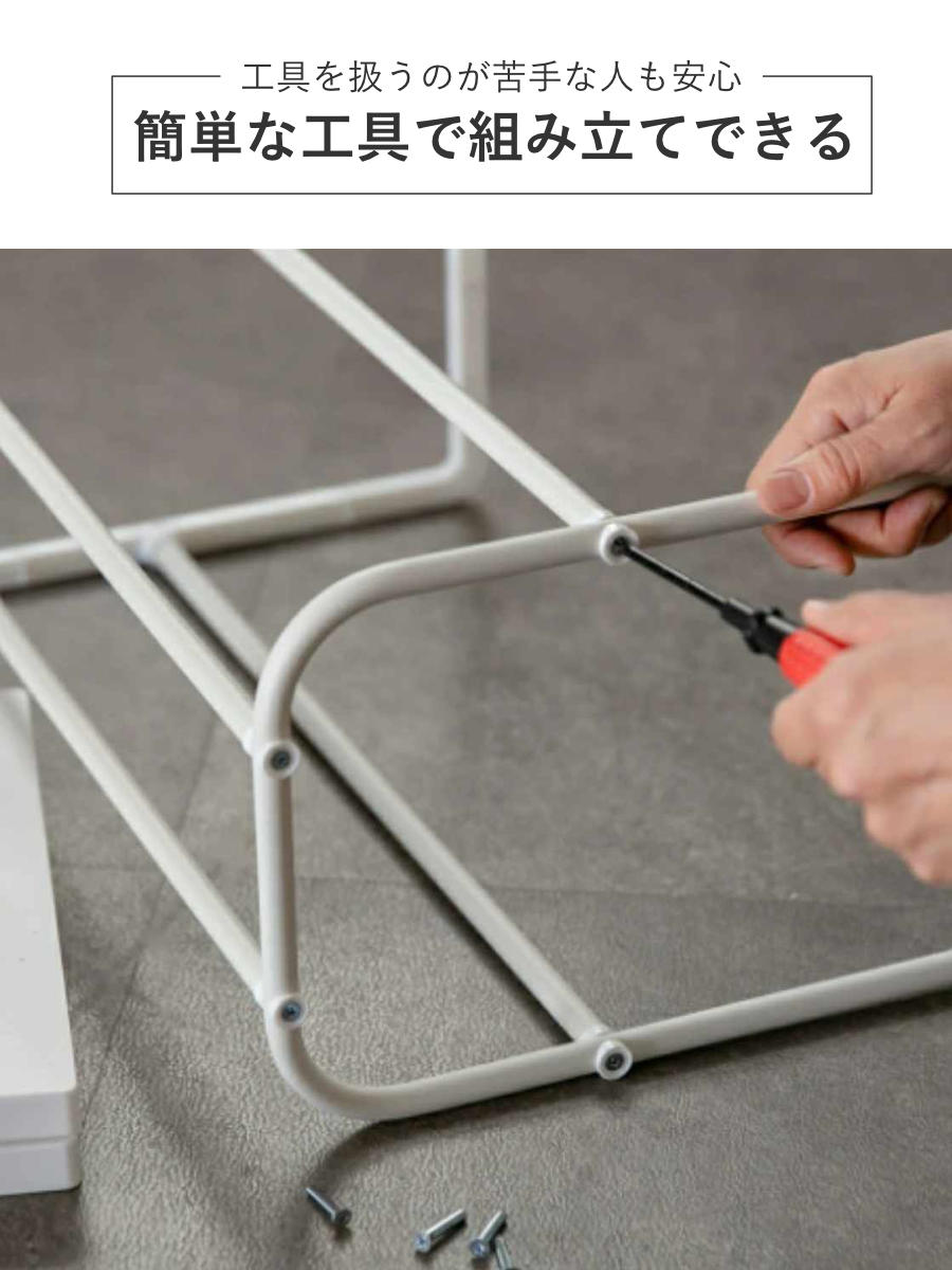 簡単な工具だけで組み立てられます。組み立て家具や工具を扱うのが苦手、という方にもおすすめです。