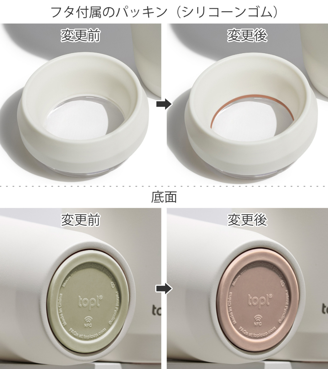 Salt(ソルト)のみ、フタ付属のパッキンおよび底面のカラーが変更となります。旧在庫が無くなり次第、順次切り替わりとなるため、新・旧カラーをお選びいただけません。予めご了承ください。