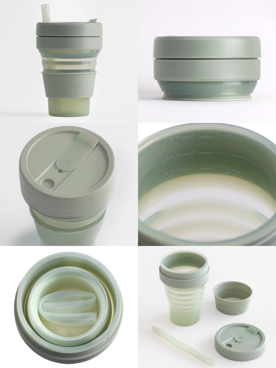 stojo(ストージョ)とは、英単語 stow(場所・容器にしまい込む)と、スラングのJOE(コーヒー)を組み合わせた造語です。その名のとおり、コーヒーを飲んだ後にカップをクシャッと折りたたんで手軽に持ち運べます。