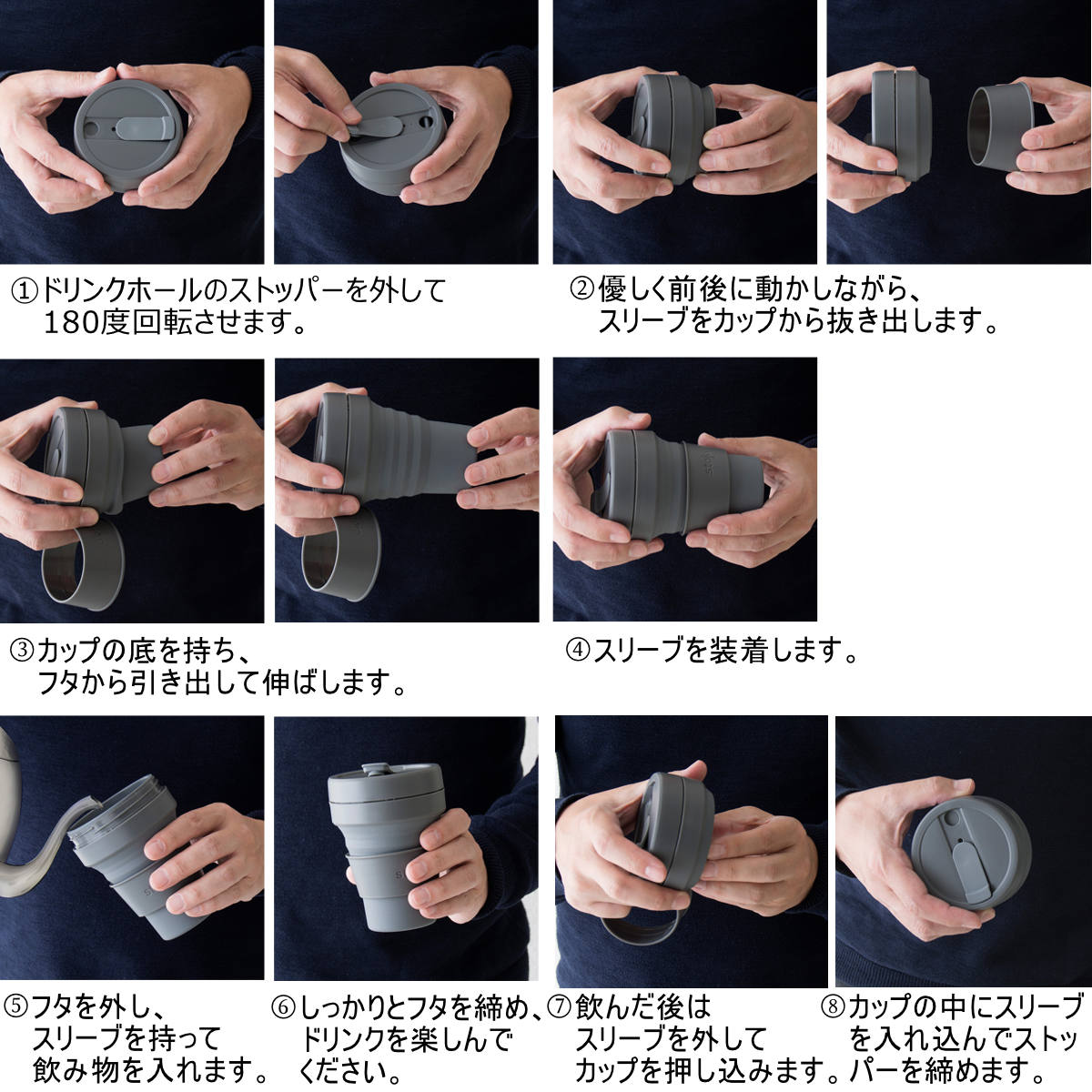 シリコーンカップは割れる心配もなく、折りたたんで持ち運べるので、幅広いシーンでお使いいただけます。オフィスにはもちろん、アウトドアや旅行、出張や入院など、バッグにひとつ入れておけばどんな時でも活躍します。ご家族やご友人への贈り物にもおすすめです。