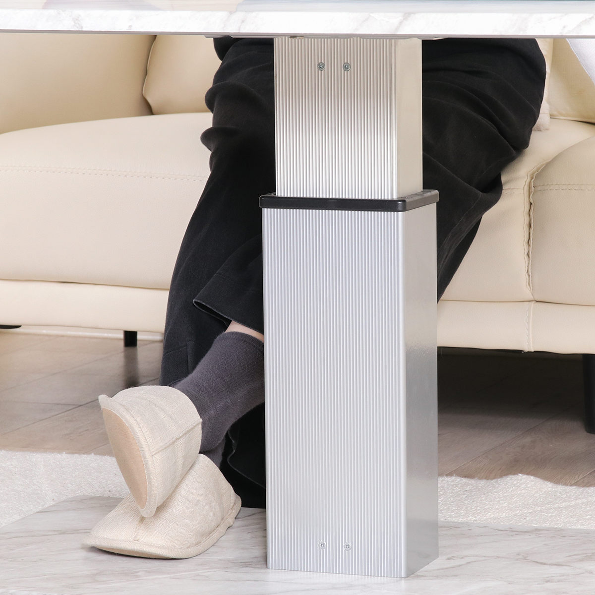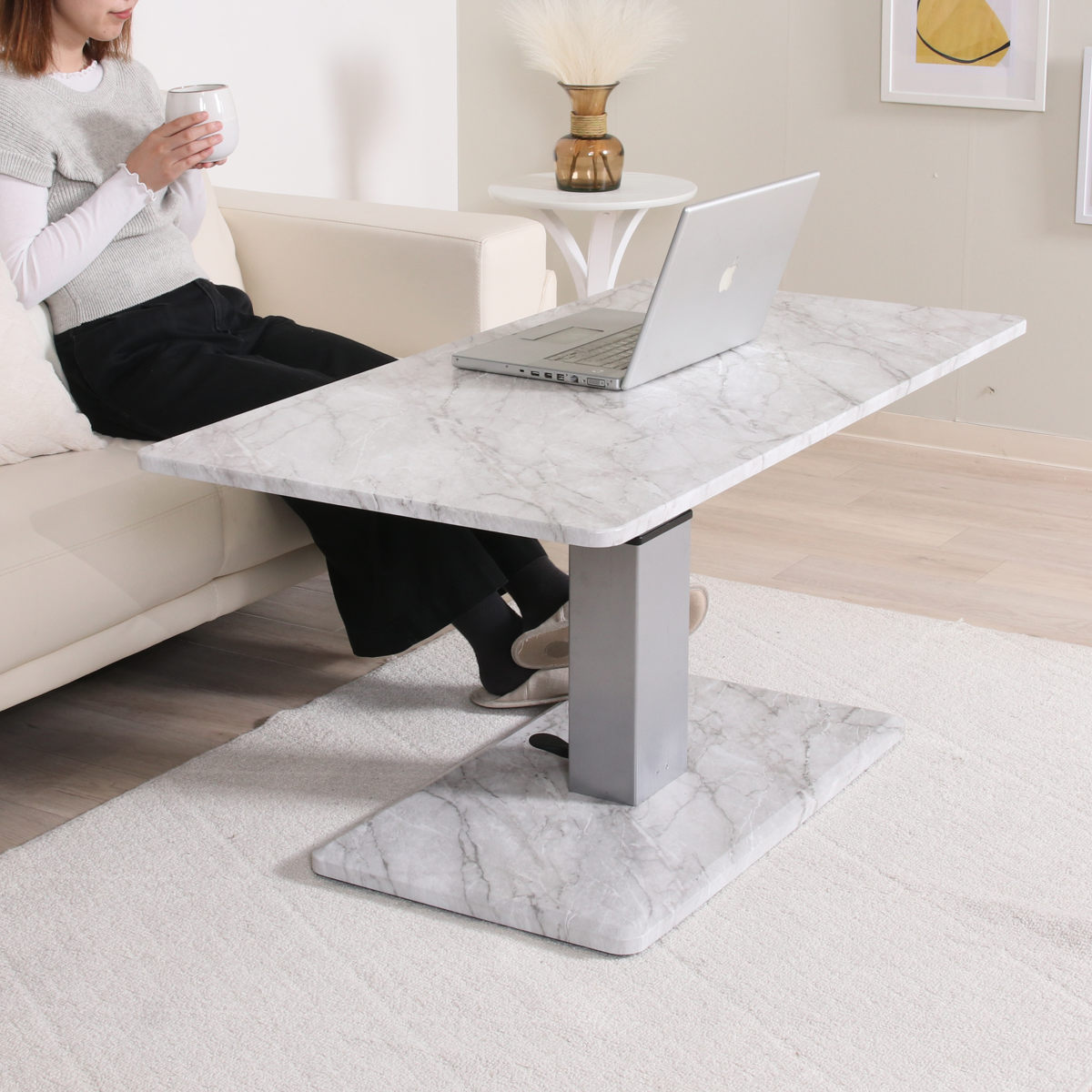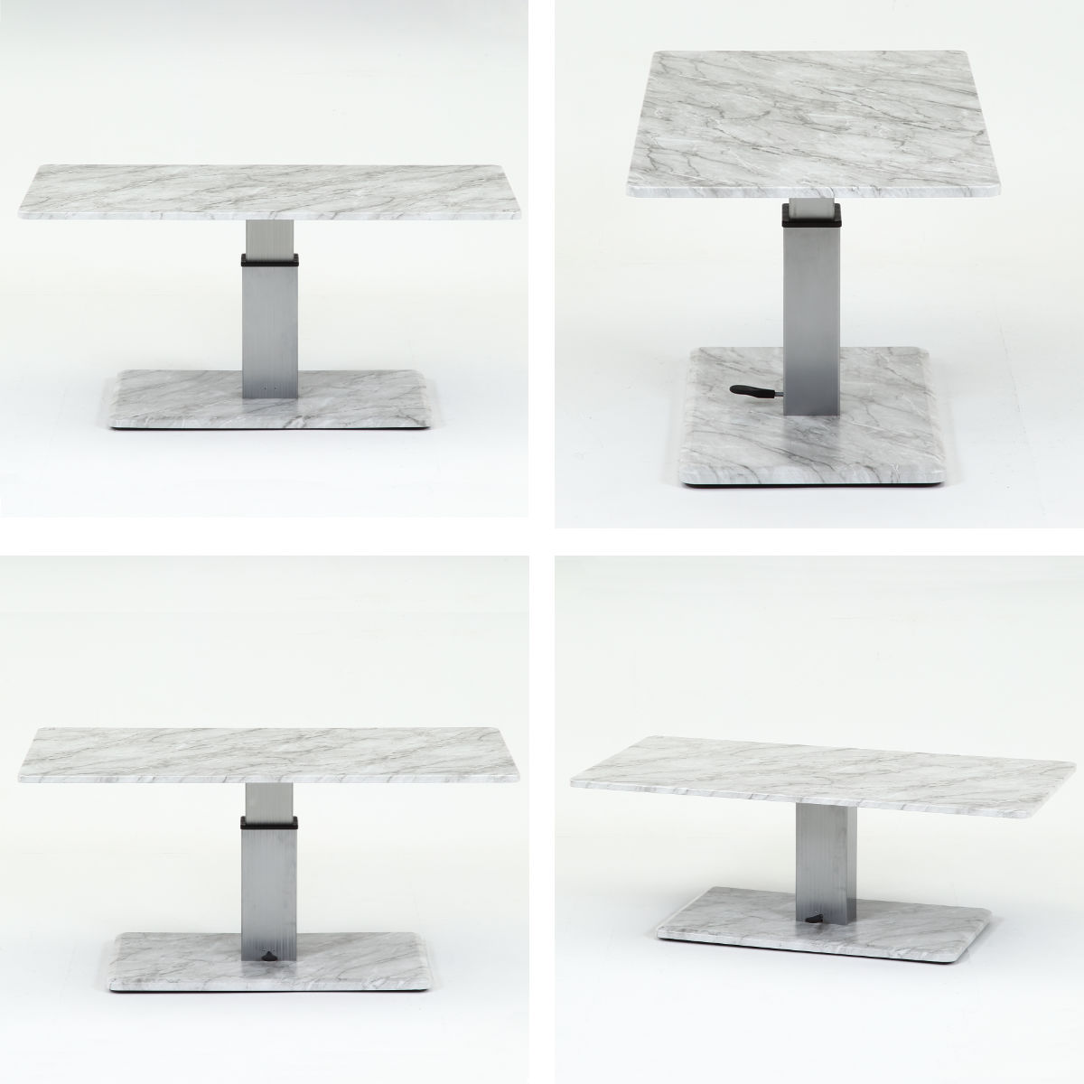 1本脚で空間を広く!無段階調整できる大理石柄の昇降テーブル