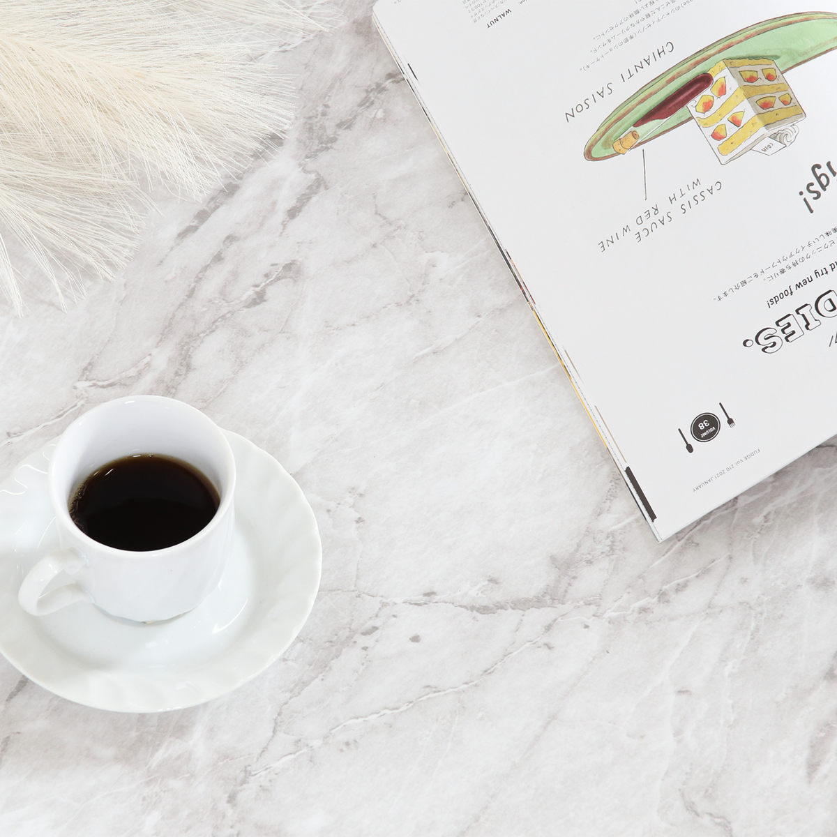 幅120cmの1本脚がシックなカフェ風テーブルです。まるで本物のようなリアルさがある大理石柄が、気品あふれる空間を作り出します。
