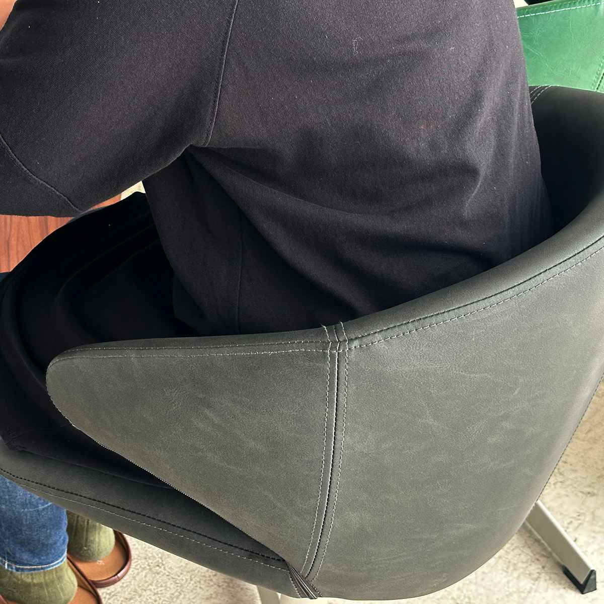 | 材質 | 張地:合成皮革(PU) 芯材:積層合板 中身:スチールフレーム/ウレタンフォーム 脚部:スチール(粉体塗装) |