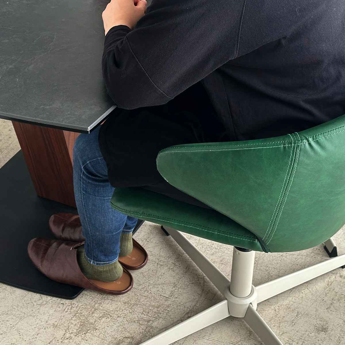 「スワンチェア」の脚の形状を残しつつ、トレンドのグレージュに塗装。懐かしさもありつつ旬な空気を纏うチェアに仕上がりました。レトロからモダンまで、様々なテイストに馴染むデザインです。
