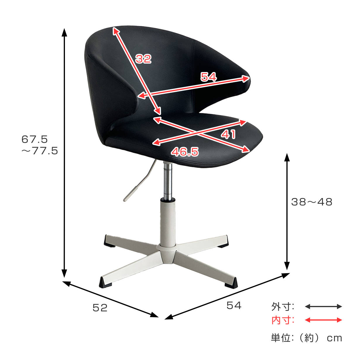 - 約幅54×奥行52×高さ67.5~77.5cm