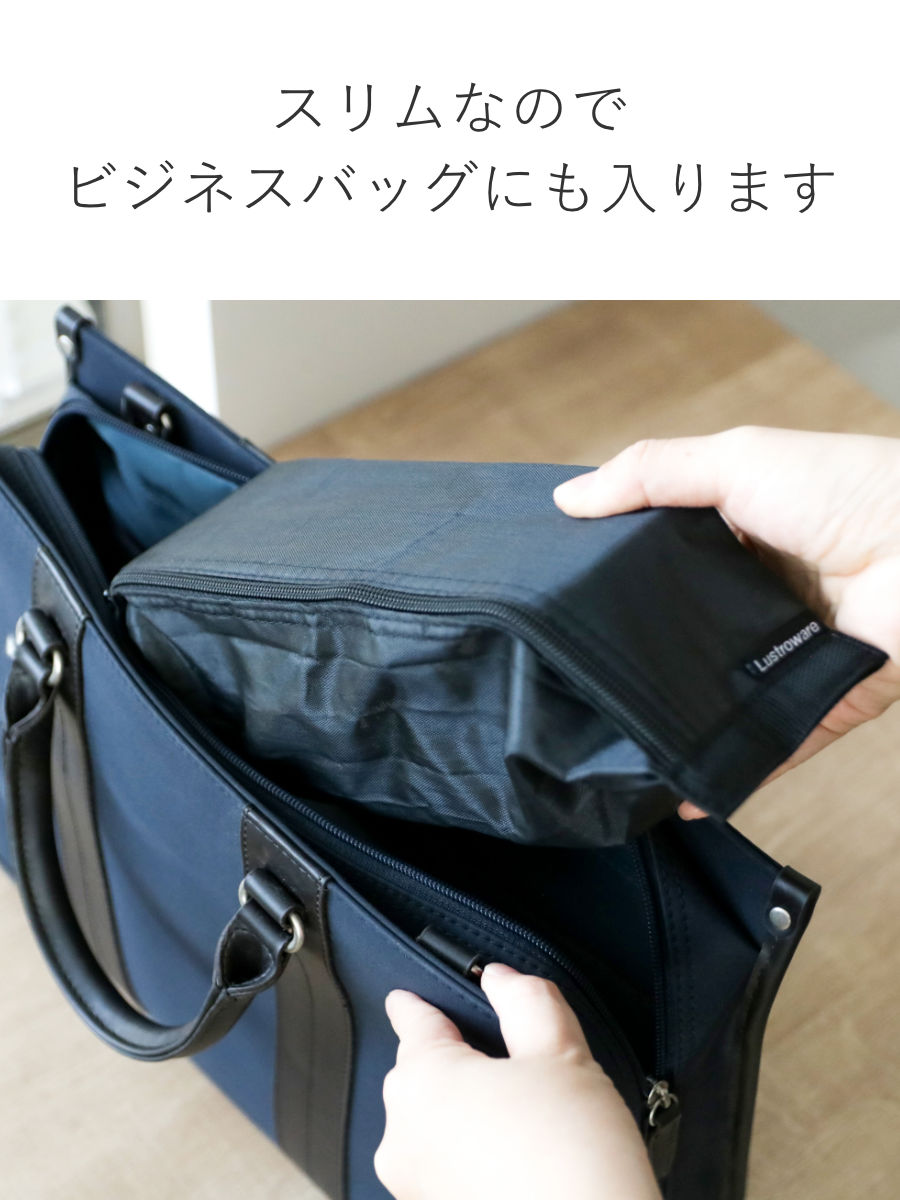 スリムなお弁当箱なのでかばんに入れてもかさばりにくく、通勤・通学に便利です。ビジネスバッグにもスッキリ収まります。