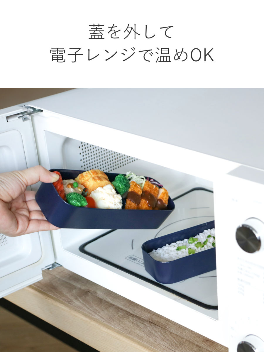 蓋を外すと電子レンジに対応しています。ランチタイムに温かいお弁当を楽しめます。