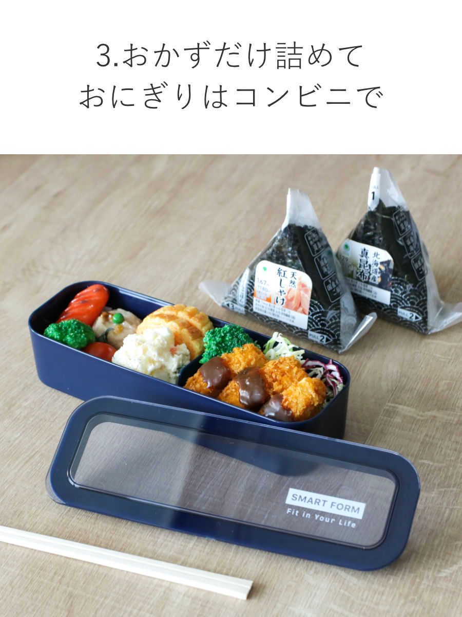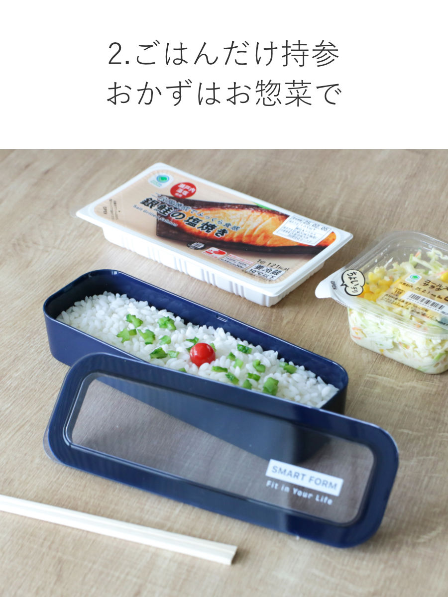 おかずだけ詰めて、おにぎりはコンビニで。ご飯だけ詰めておかずはお惣菜で。などライススタイルに合わせて気軽にランチを用意できます。1段でも2段でも使用でき、使い道のバリエーションが豊富です。