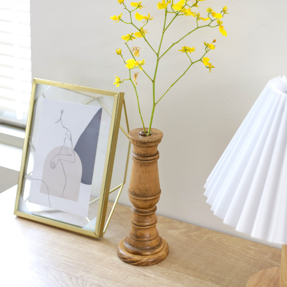 アンティークのような雰囲気のある木製の一輪挿し