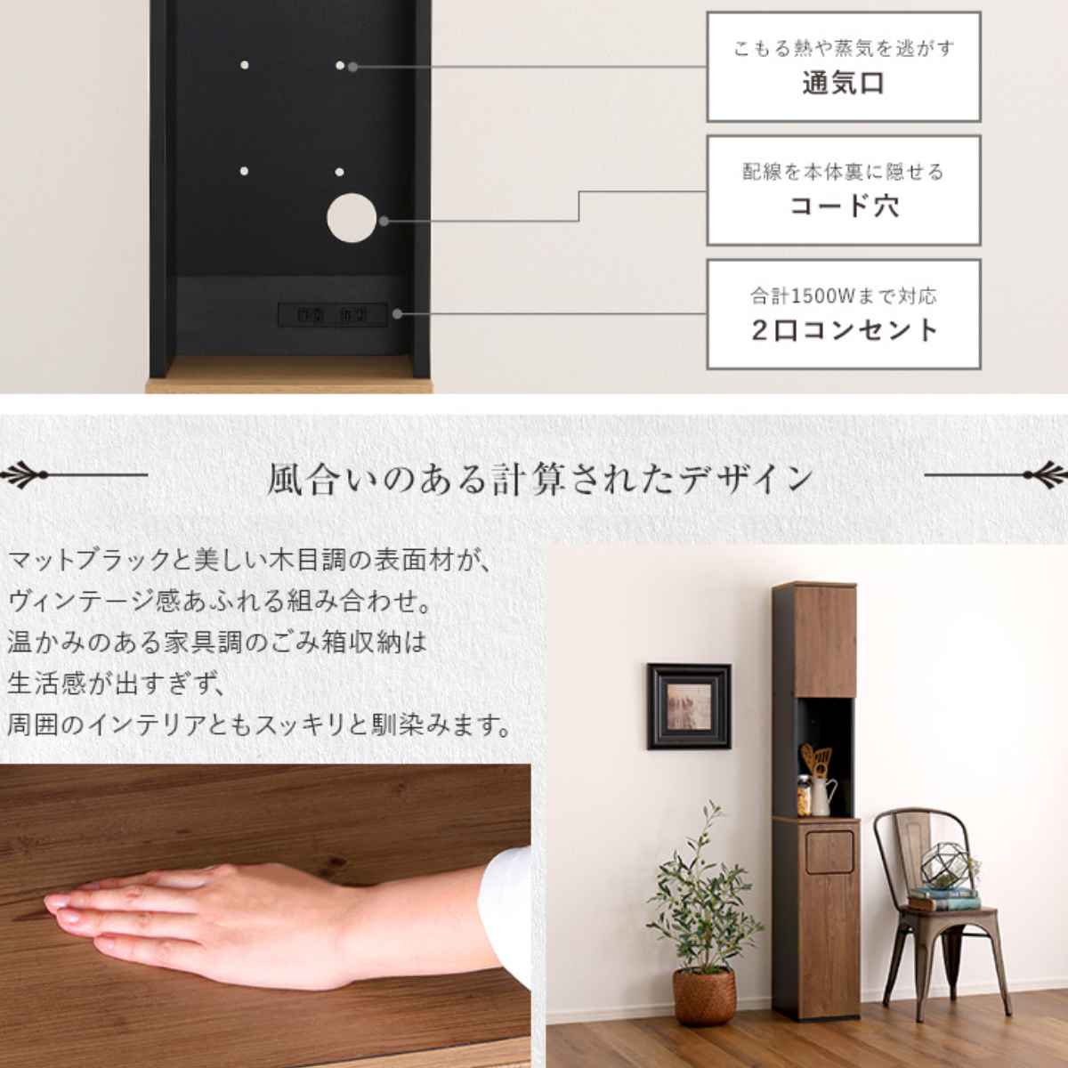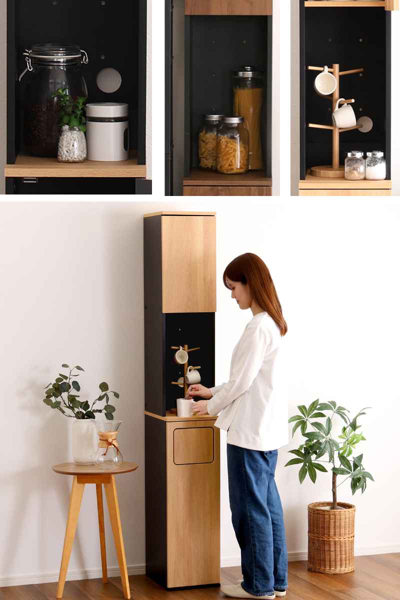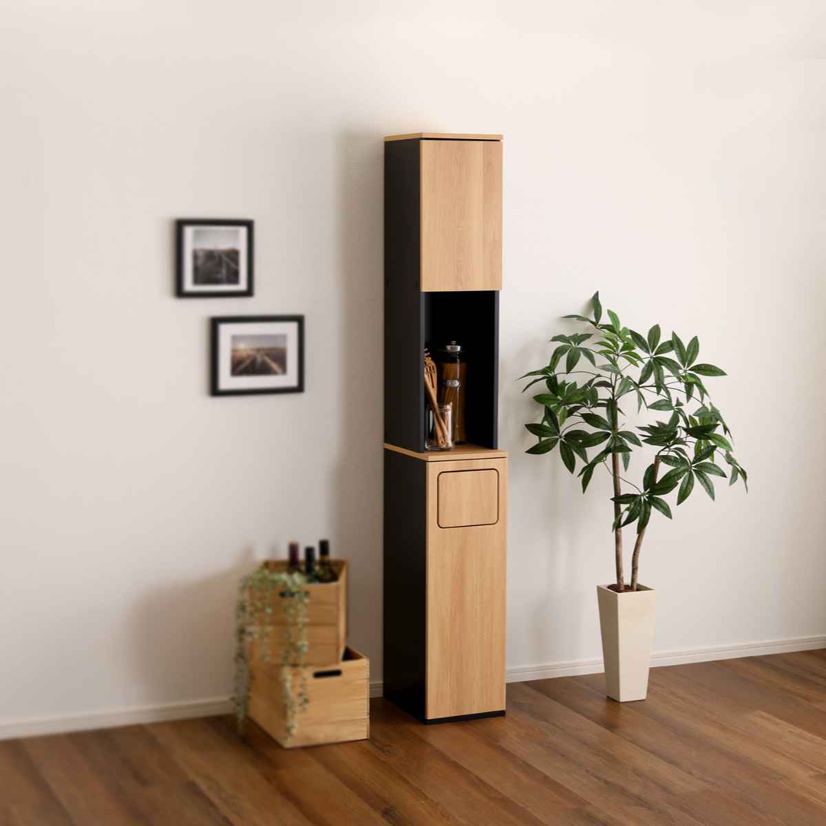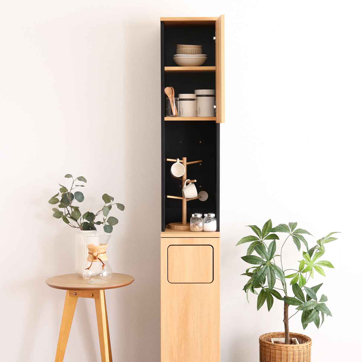 食器棚とゴミ箱の一台二役。ゴミ箱一体型食器棚です。まるで家具のようなデザインは、一見ゴミ箱に見えません。「生活感を隠したい」「オシャレに収納したい」そんな思いに寄り添うアイテムです。